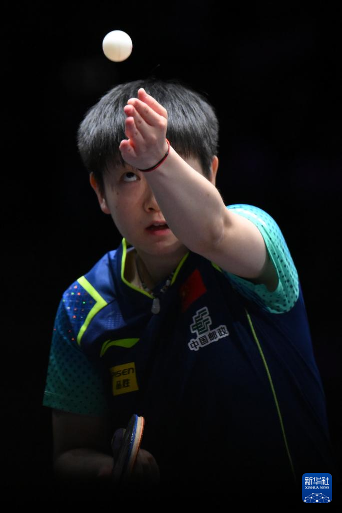 9月9日,孙颖莎在比赛中发球。新华社记者 张金加 摄