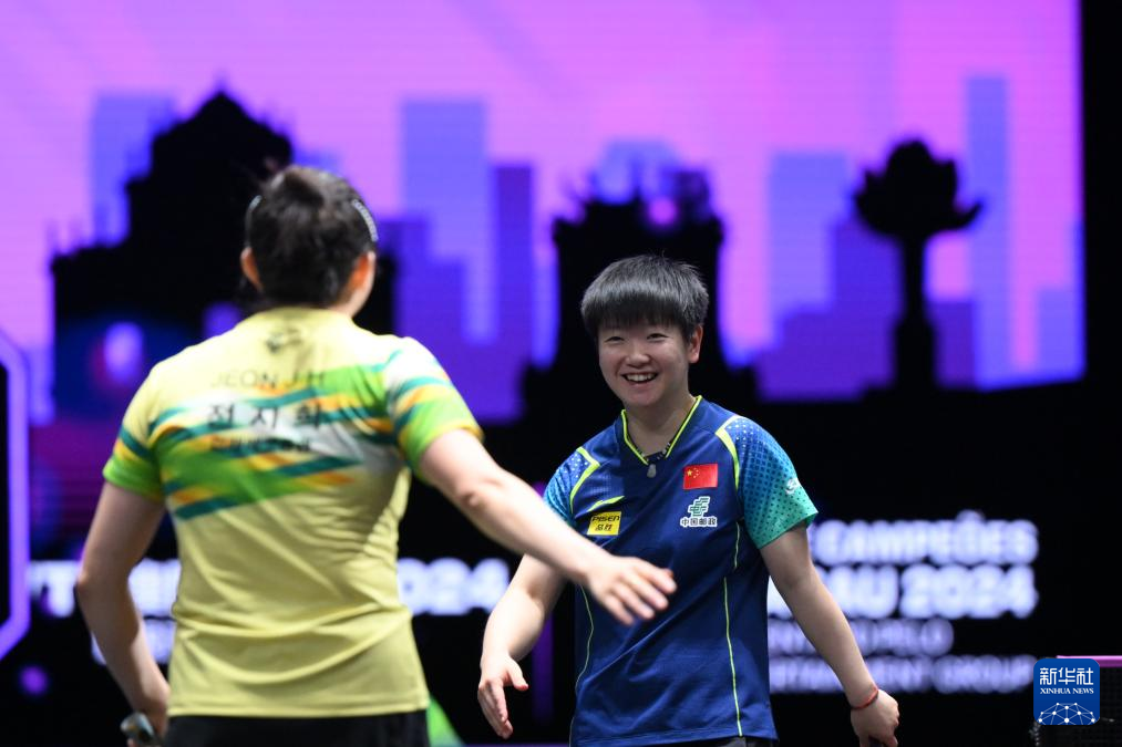 当日,在澳门举行的2024年世界乒乓球职业大联盟(WTT)澳门冠军赛女子单打首轮比赛中,中国选手孙颖莎3比0战胜韩国选手田志希,晋级下一轮。