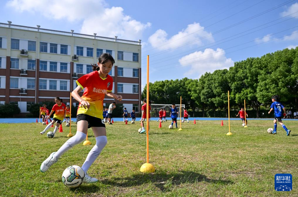近年来,江苏昆山礼仁外国语学校不断创新体育教学模式,在大课间休息时段,开展魅力足球、悦动篮球、趣味田径、花样绳毽、活力舞蹈等项目,确保学生每天得到充分运动,促进他们身心健康全面发展。