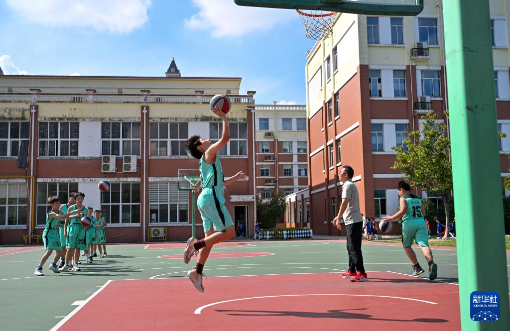 9月14日,学生在大课间打篮球。新华社发(王须中摄)
