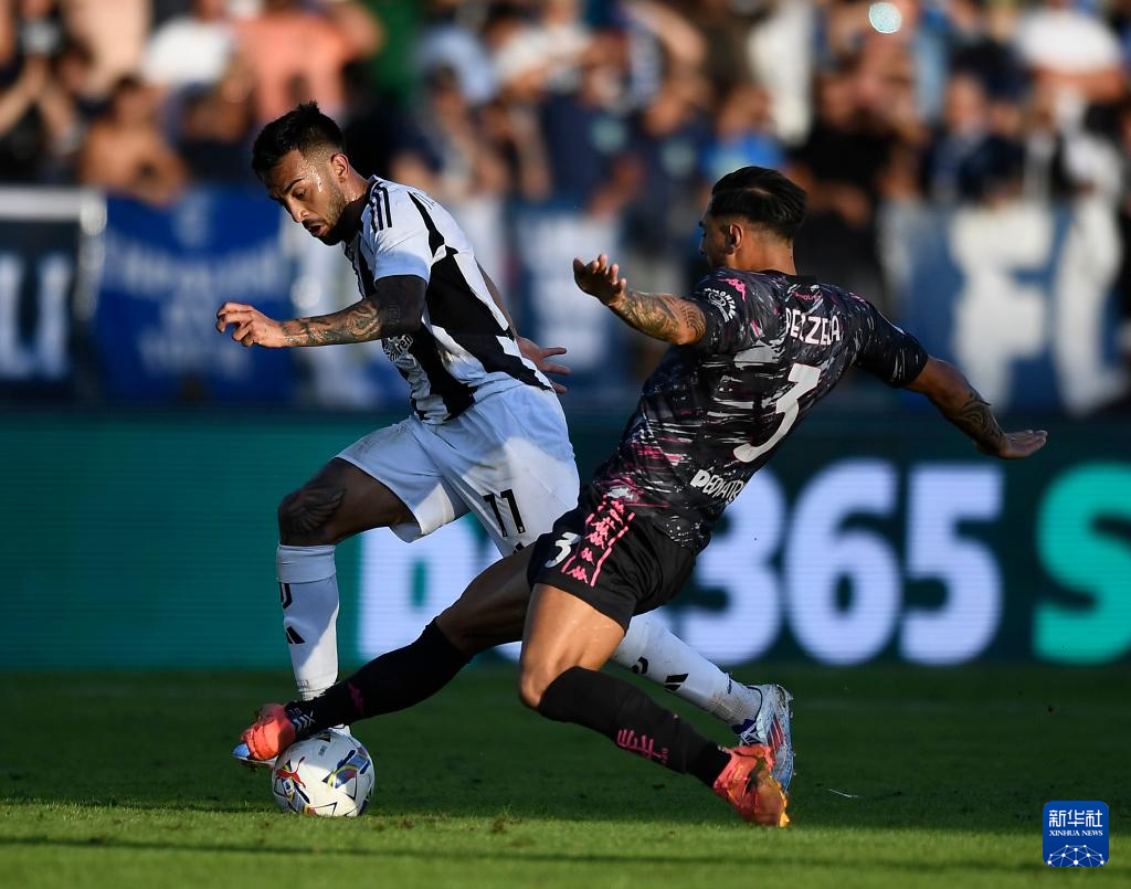 9月14日,尤文图斯队球员尼古拉斯·冈萨雷斯(左)与恩波利队球员佩泽拉在比赛中拼抢。新华社发(费代里科·塔尔迪托摄)