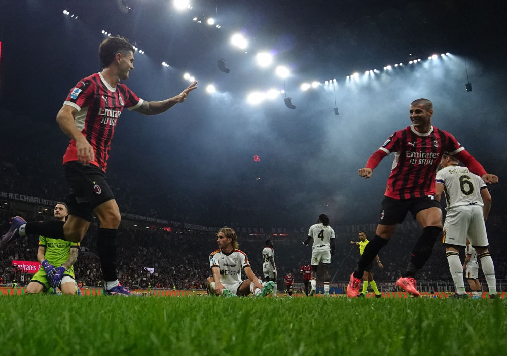 米兰当日的首发阵容与上一轮“同城德比”时一致。第38分钟,米兰的特奥定位球送出助攻,莫拉塔门前头球破门。这粒进球掀起了主队一波进攻高潮,三分钟后,特奥接莱奥的长传助攻,小角度抽射破门。莱切此前已有失球后状态低迷、防线全面溃散的先例,当日他们重蹈覆辙,第43分钟再失一球:米兰球员亚伯拉罕两度射门被挡出,但他的队友普利希奇补射得手,比分变为3:0。