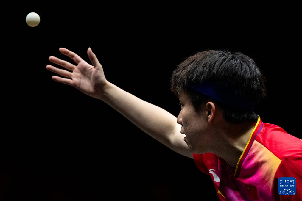 9月29日,王楚钦在比赛中发球。