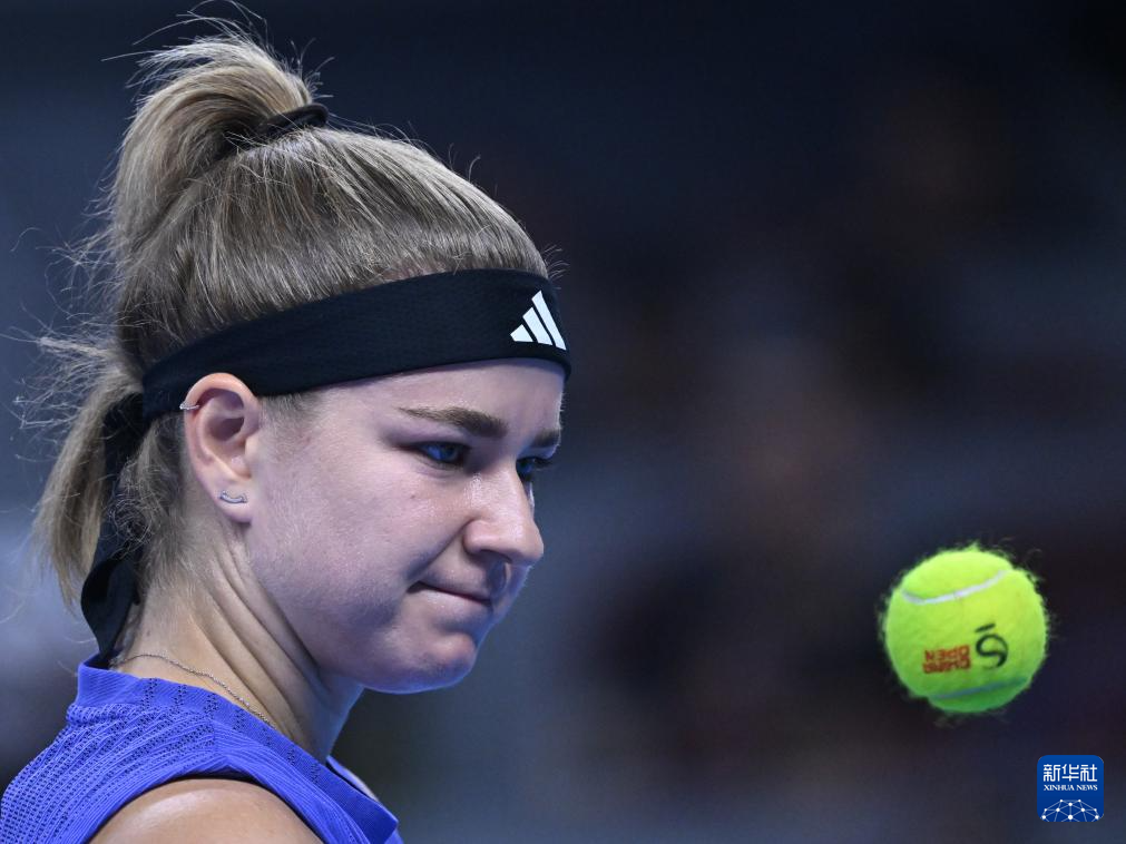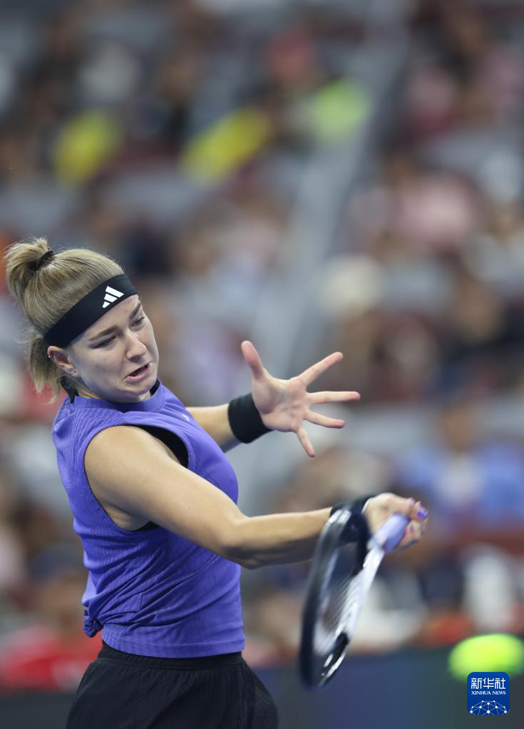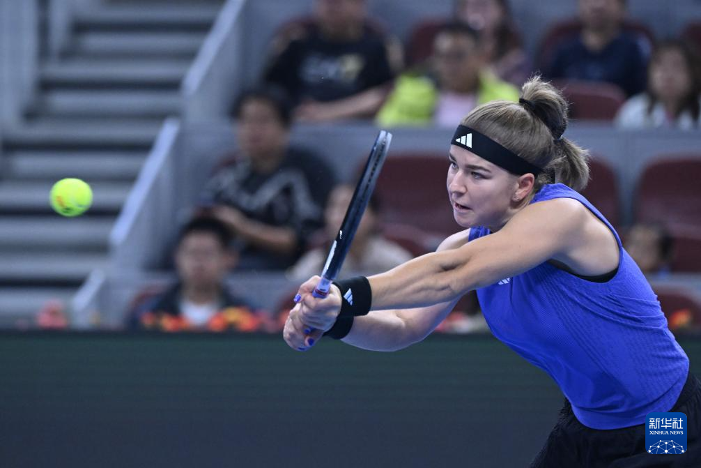 10月5日,穆霍娃在比赛中回球。