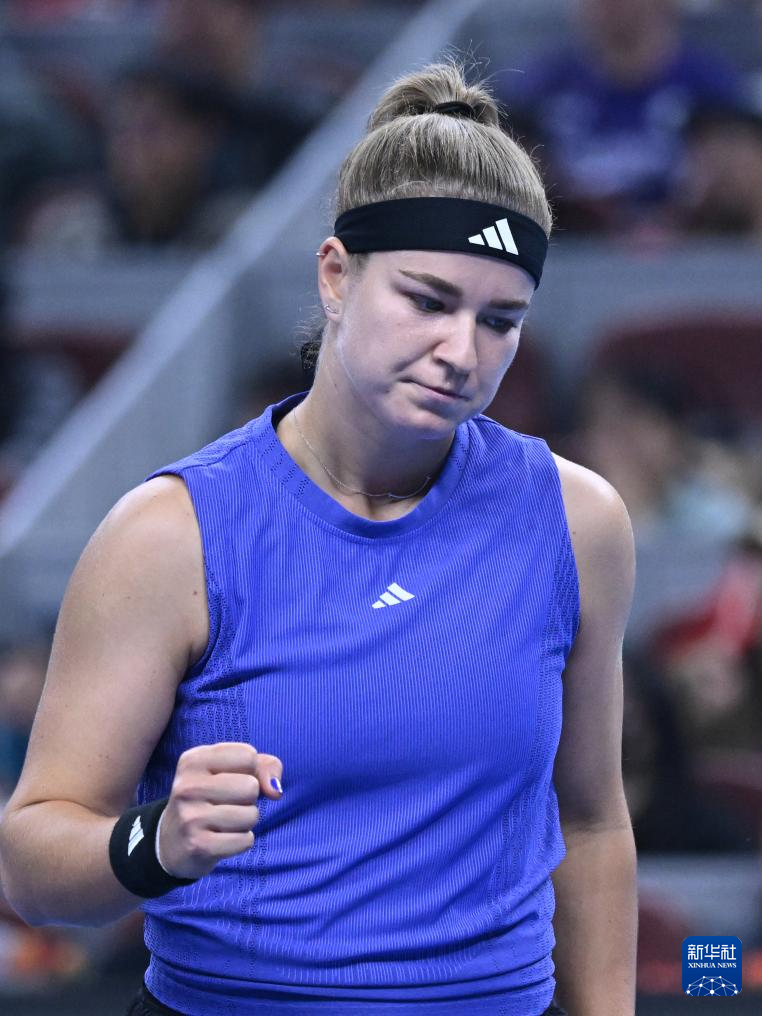 10月5日,穆霍娃在比赛中庆祝得分。