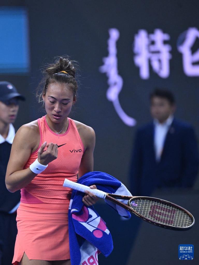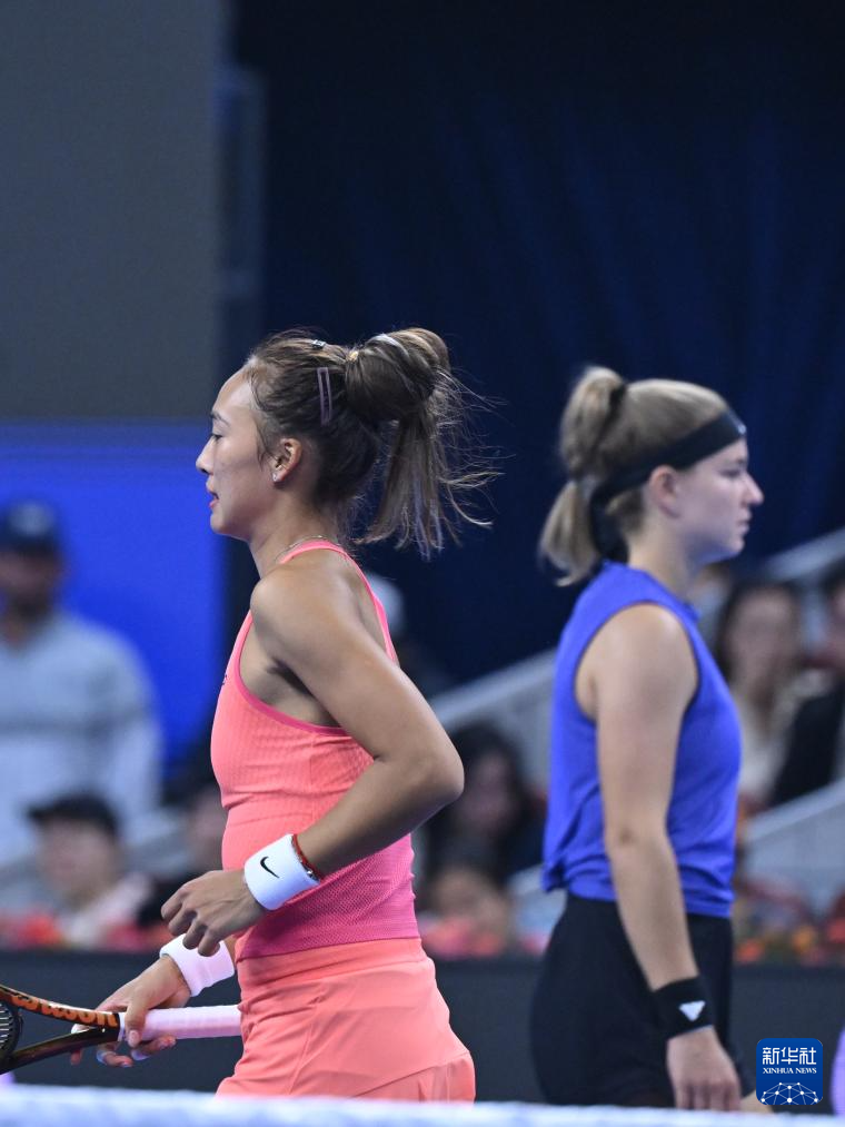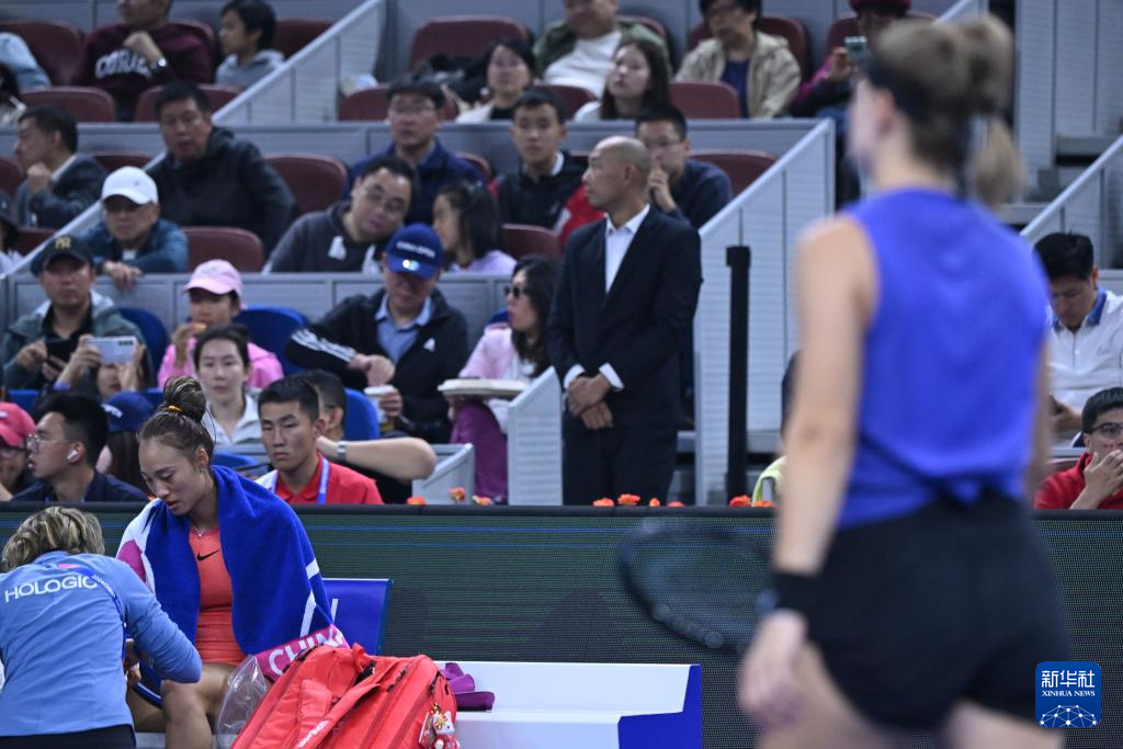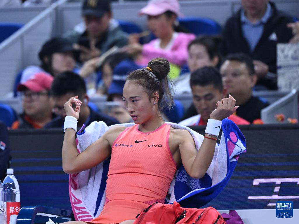 10月5日,郑钦文在比赛间隙。