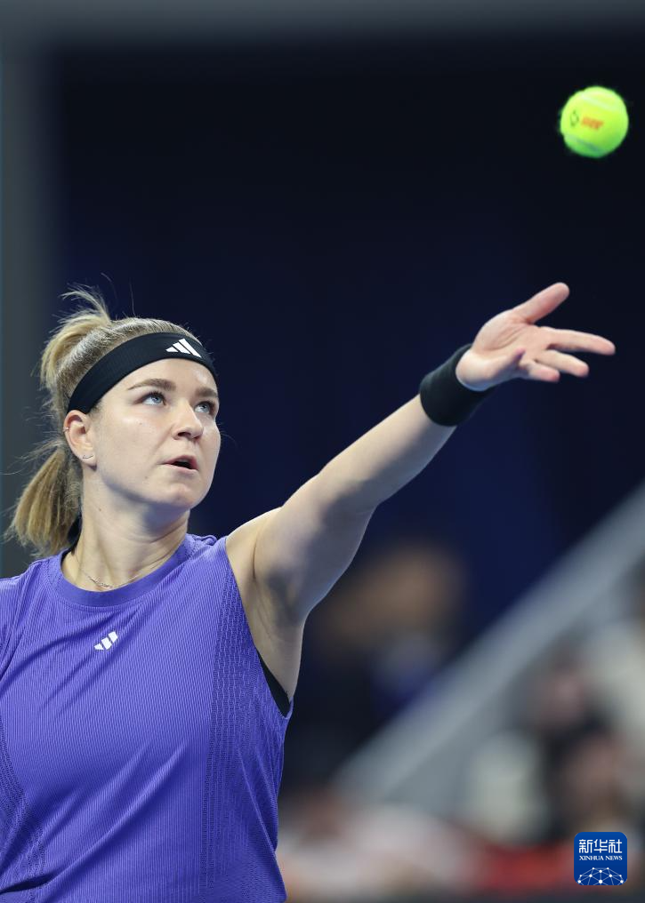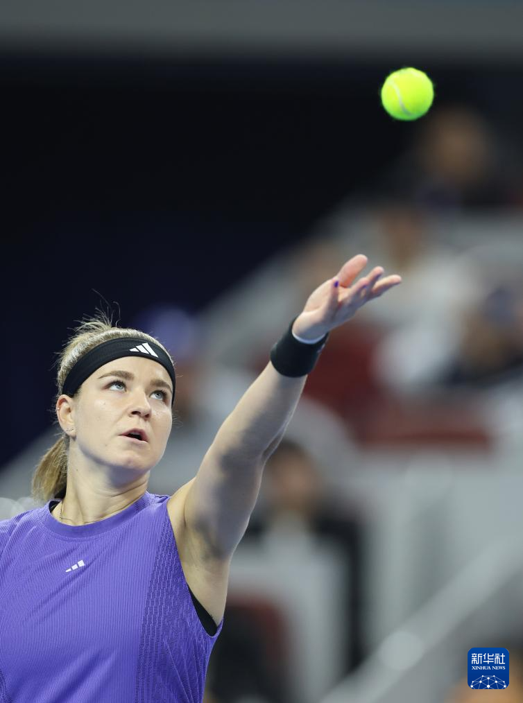 10月5日,穆霍娃在比赛中发球。