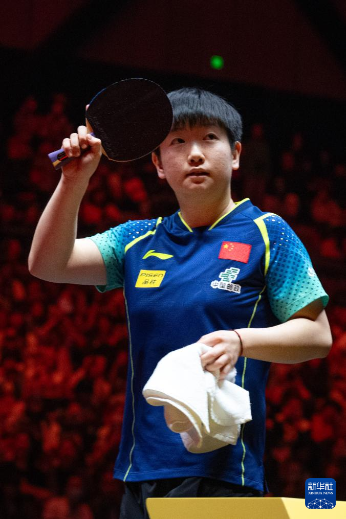 10月5日,孙颖莎在赛后向球迷挥手致意。
