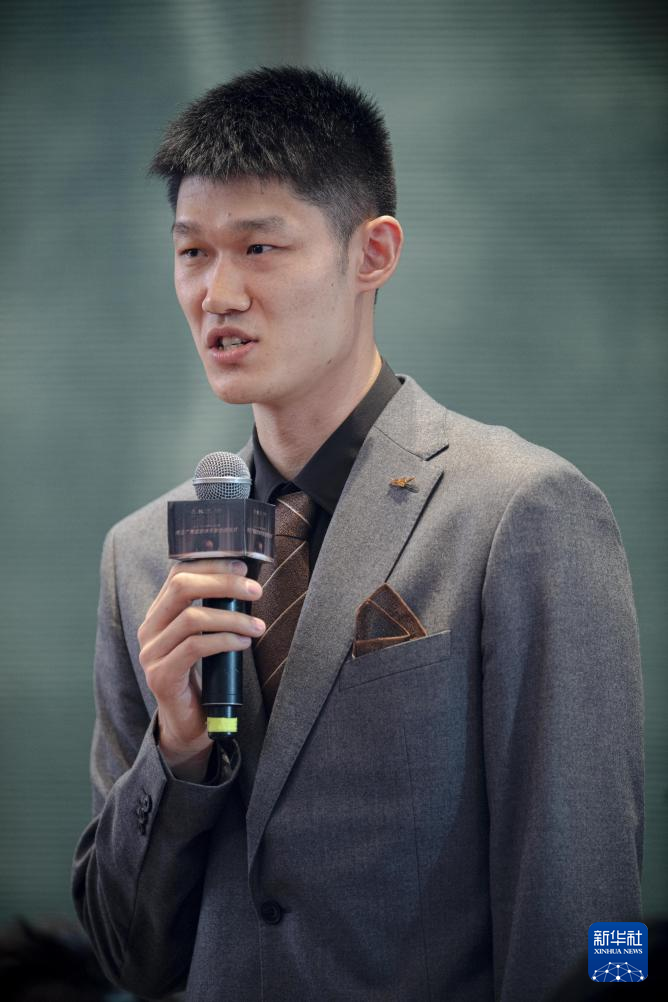 10月8日,新加入浙江广厦篮球俱乐部球员林秉圣(左)在新赛季出征仪式上。