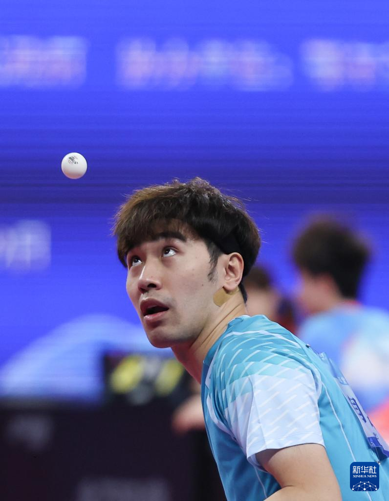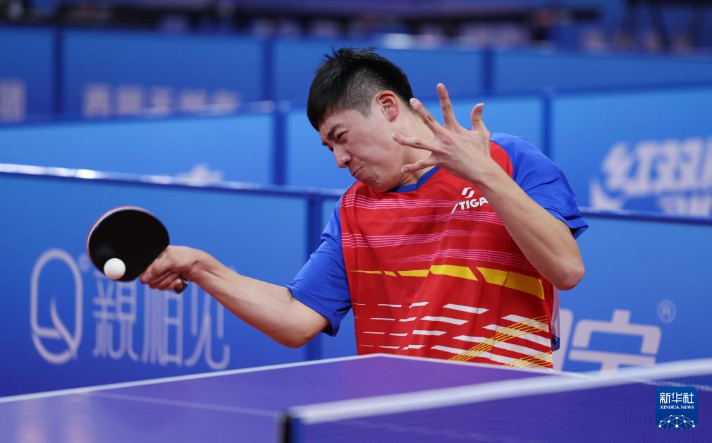 当日,在内蒙古鄂尔多斯举行的2024年全国乒乓球锦标赛男子团体小组赛首轮比赛中,江苏队3比1战胜四川丰谷酒业队。