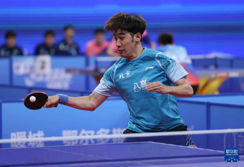 当日,在内蒙古鄂尔多斯举行的2024年全国乒乓球锦标赛男子团体小组赛首轮比赛中,北京八喜队3比0战胜甘肃队。