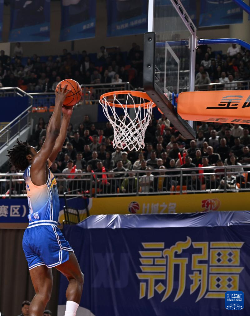 11月3日,新疆伊力特队球员黑根斯在比赛中扣篮。