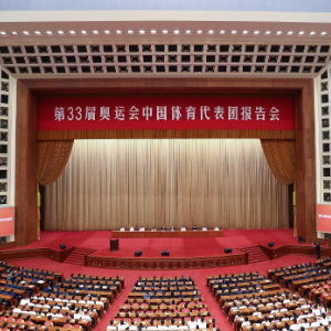 新华社北京11月15日电 中央宣传部、国家体育总局15日下午在人民大会堂举行第33届奥运会中国体育代表团报告会。