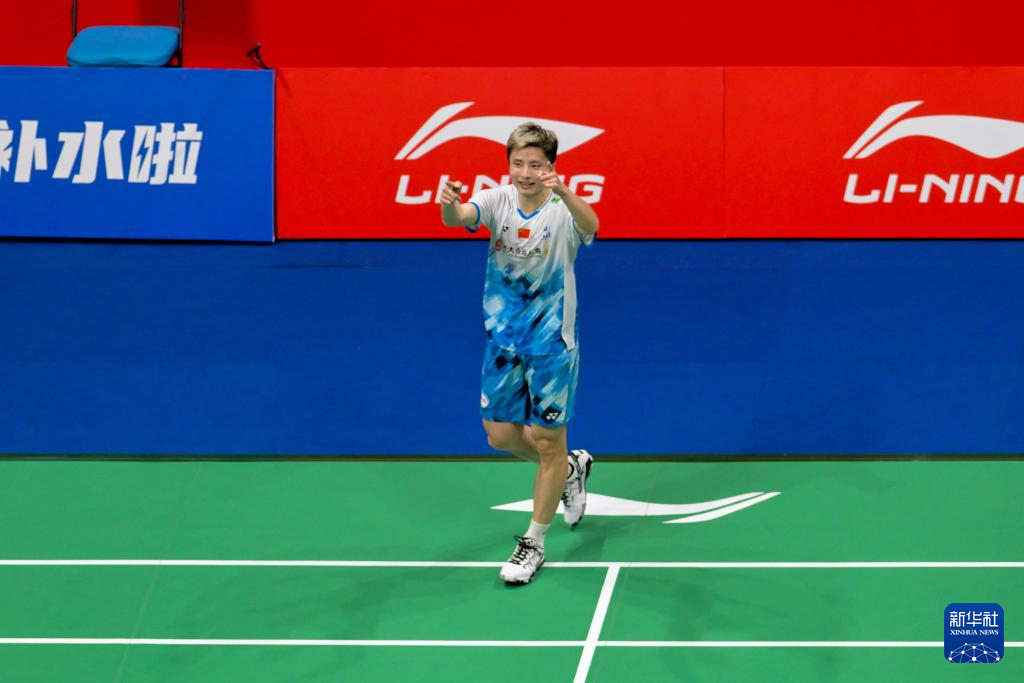 11月22日,石宇奇在比赛获胜后与观众互动。