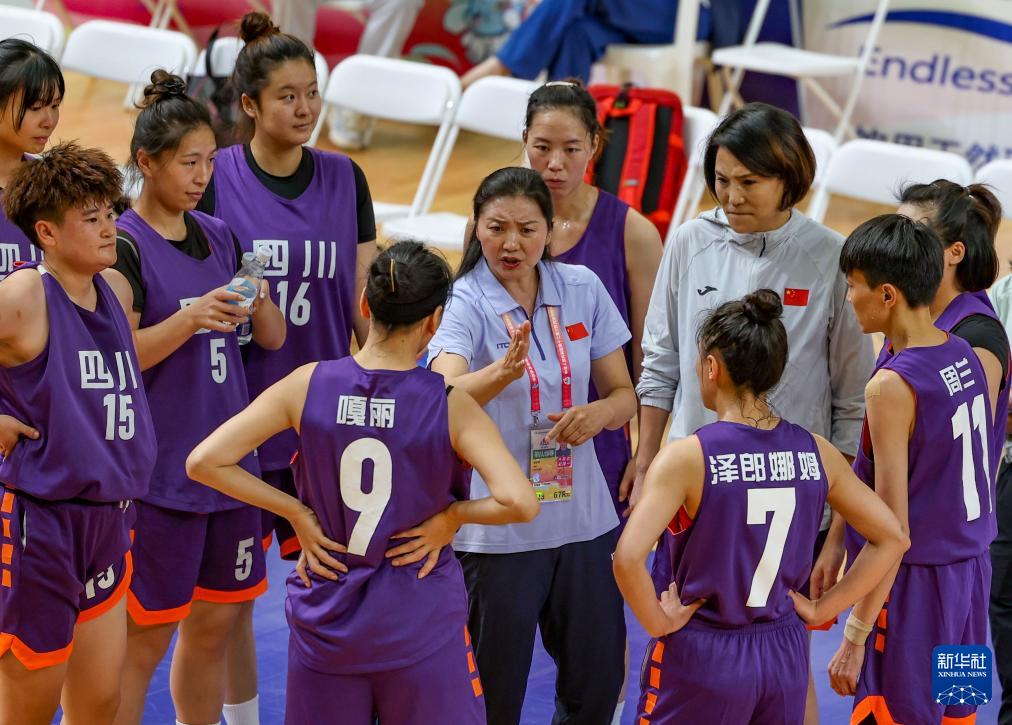 11月28日,四川队教练员杨忠琴(中)在暂停期间布置战术。