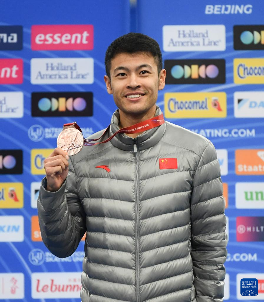 11月30日,获得铜牌的中国选手宁忠岩在颁奖仪式上。新华社记者 鞠焕宗 摄