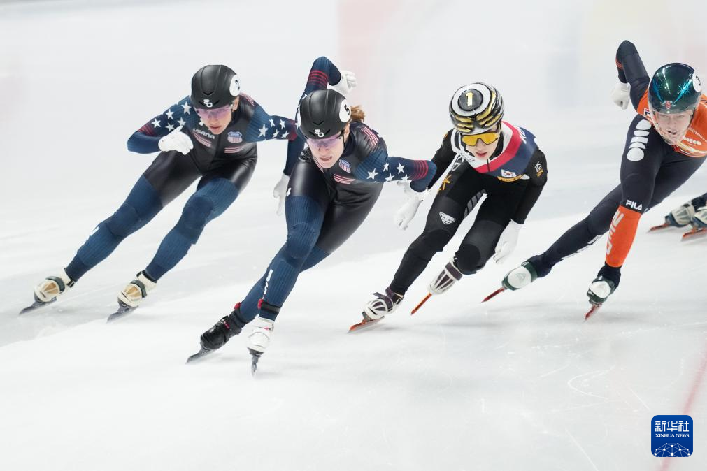 12月8日,美国选手科琳娜·斯托达德(左二)、美国选手克丽丝滕·桑托斯-格里斯沃尔德(左一)、韩国选手金吉莉(右二)在比赛中。