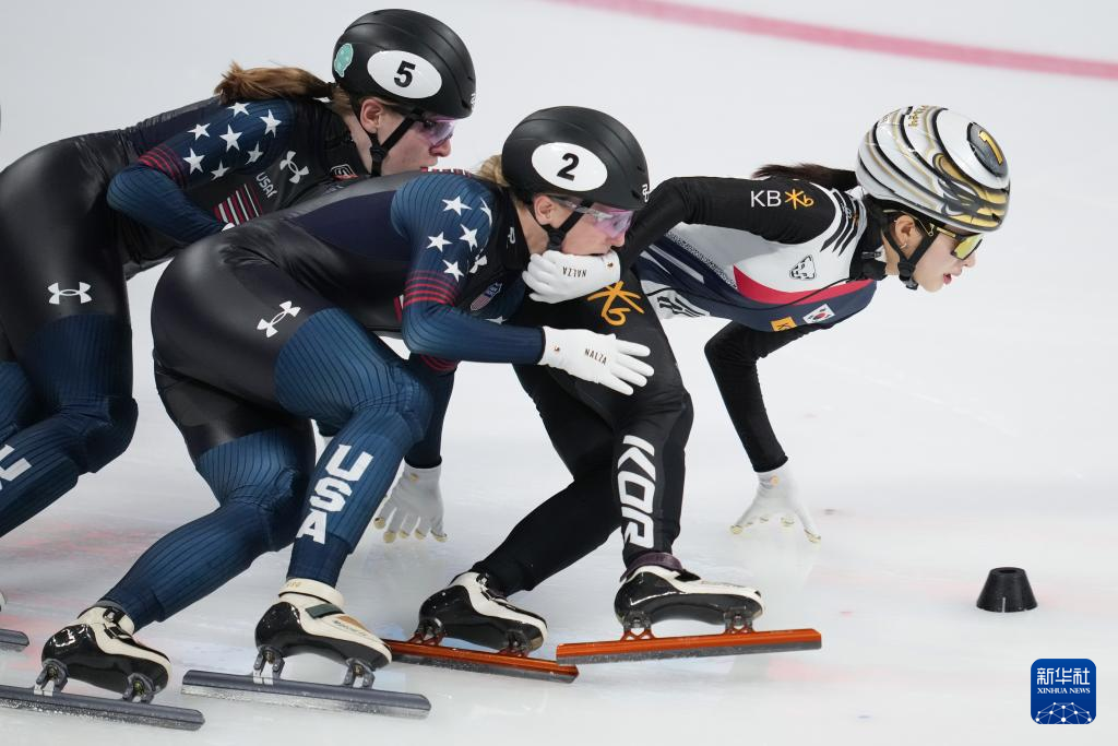 12月8日,美国选手科琳娜·斯托达德(中)、美国选手克丽丝滕·桑托斯-格里斯沃尔德、韩国选手金吉莉(右)在比赛中。