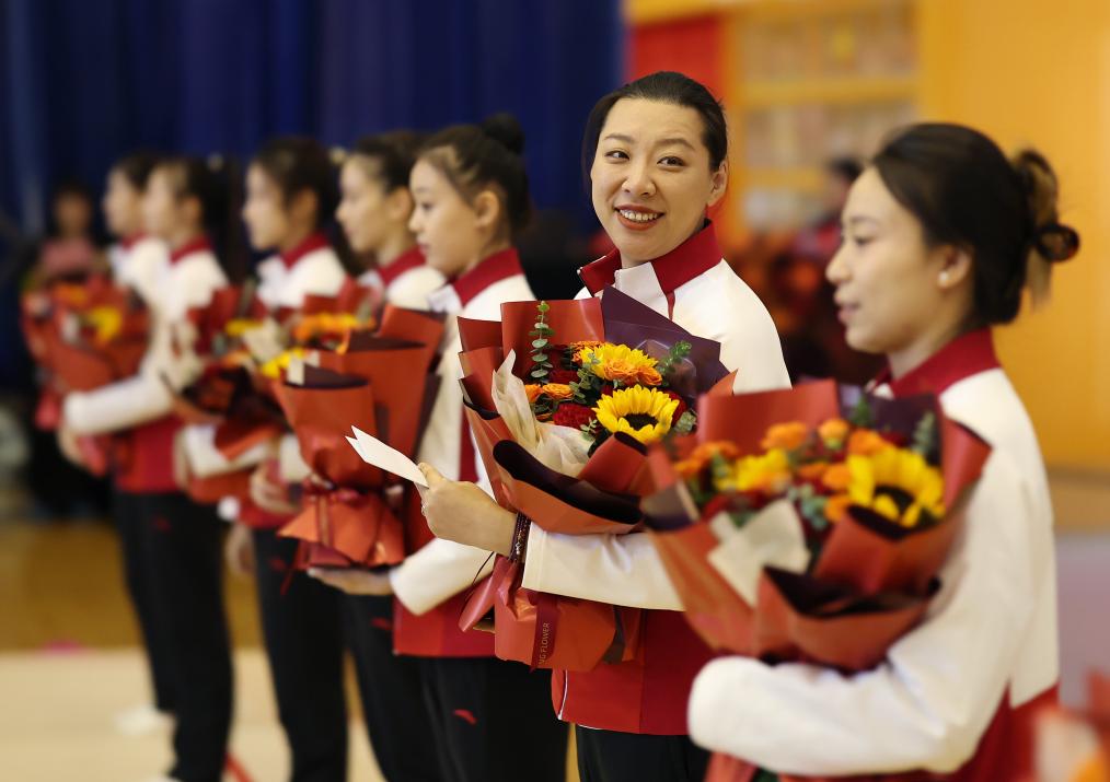 中国首批艺术体操运动员张慧琴作为老前辈代表致辞。她表示,作为业内一员,她深感自豪和激动。巴黎奥运会上,中国队将中国艺术体操的精髓展现得淋漓尽致,这离不开大家日复一日的艰苦训练。这种敬业拼搏精神不仅是中国艺术体操队的宝贵财富,更是激励整个行业不断前行的动力源泉。