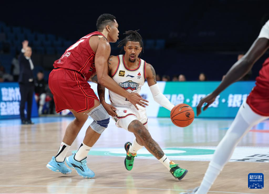 12月28日,南京头排苏酒队球员弗洛伊德(右)在比赛中突破。新华社记者 王楷焱 摄