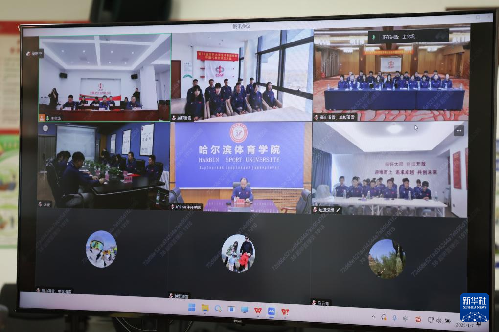 这是屏幕上显示的第32届世界大学生冬季运动会中国大学生体育代表团成立大会各会场(1月7日摄)。新华社记者 丁旭 摄