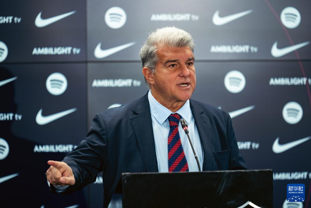 1月14日,巴塞罗那队俱乐部主席拉波尔塔在新闻发布会上。
