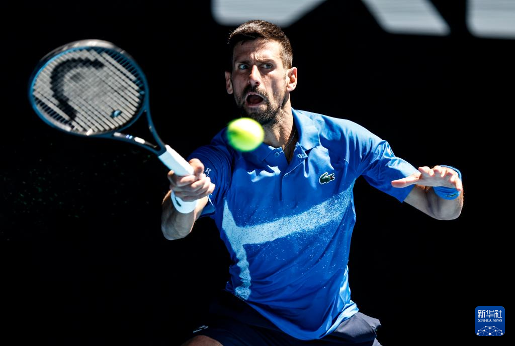 1月24日,焦科维奇在比赛中回球。