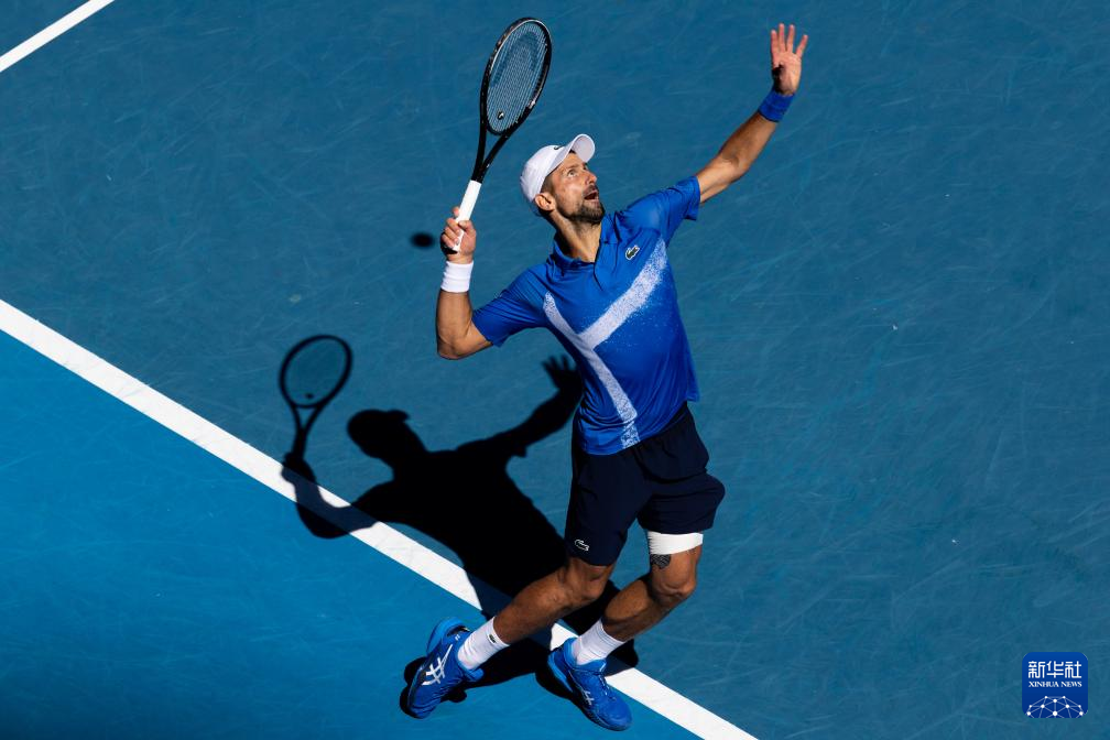 1月24日,焦科维奇在比赛中发球。