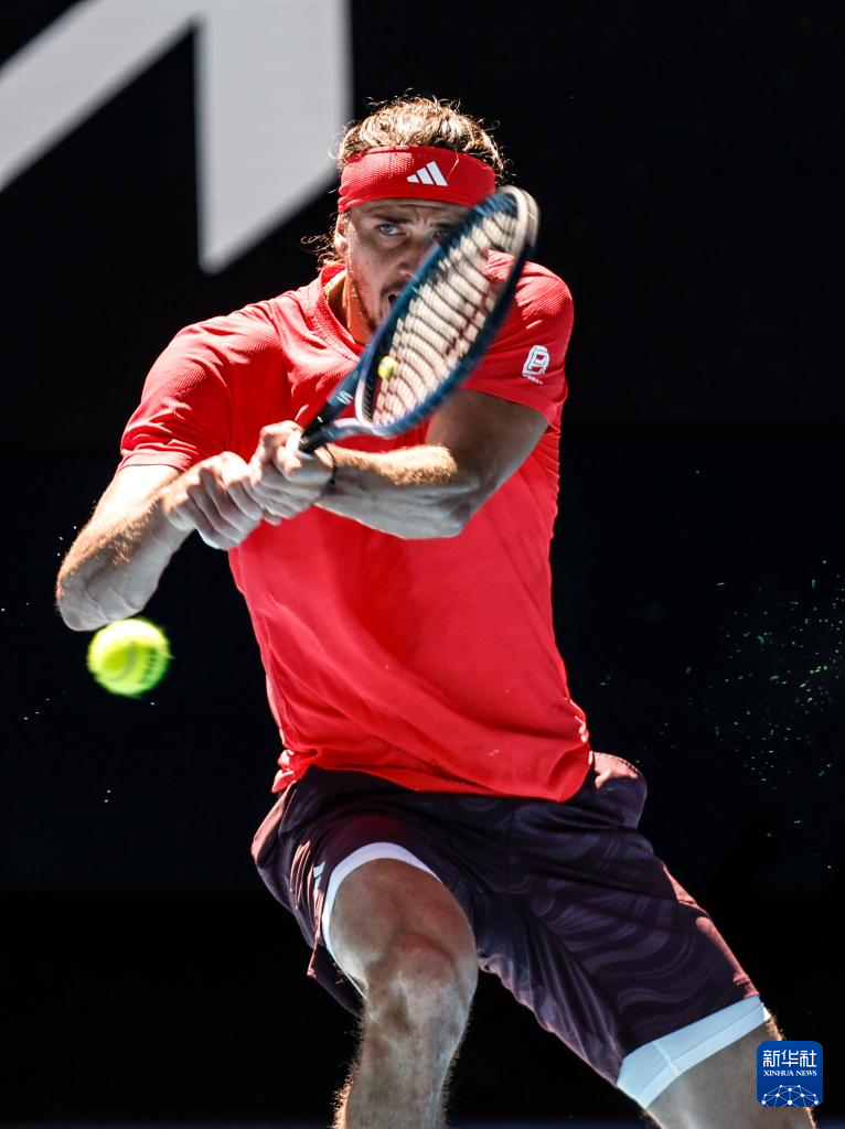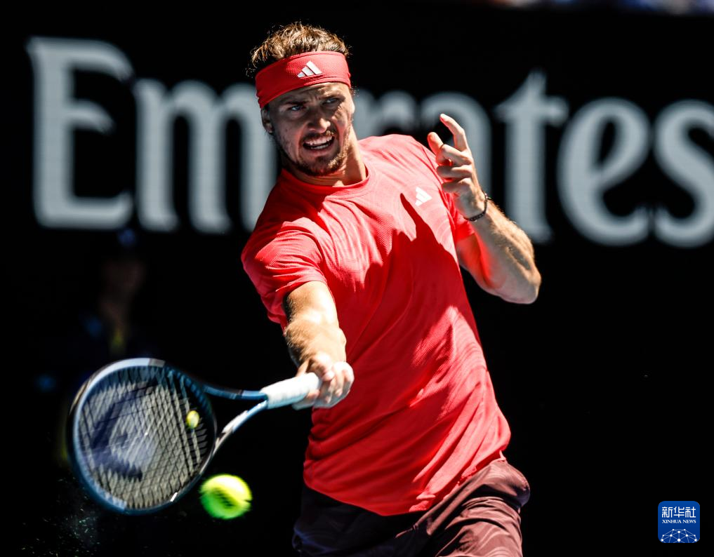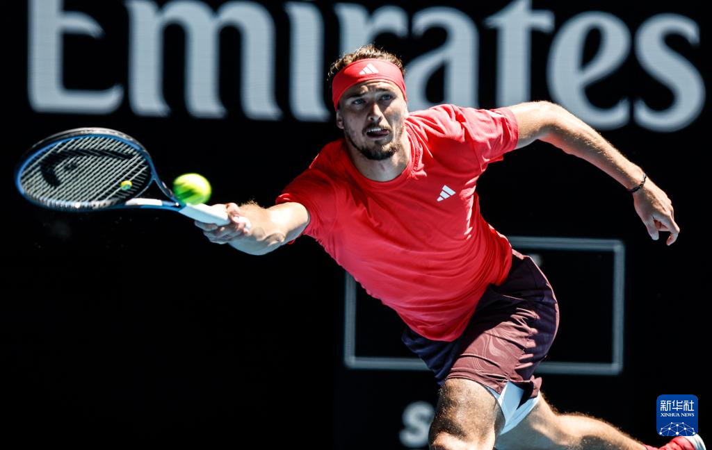 1月24日,兹维列夫在比赛中回球。