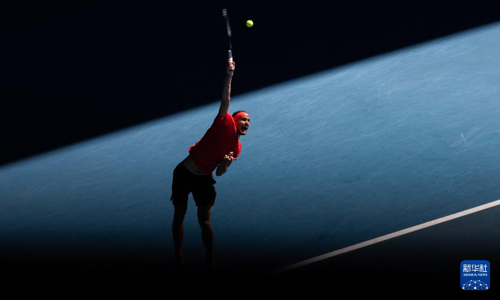 1月24日,兹维列夫在比赛中发球。