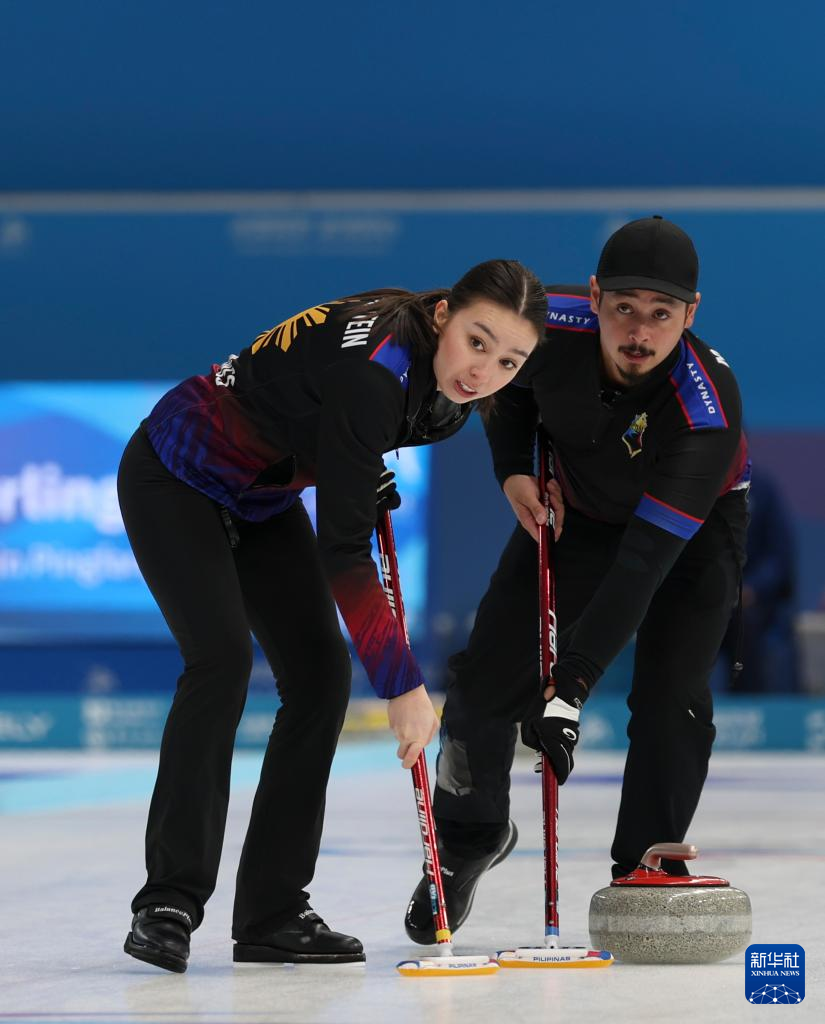 2月8日,菲律宾队选手杜伯斯坦(左)/普菲斯特在比赛中。