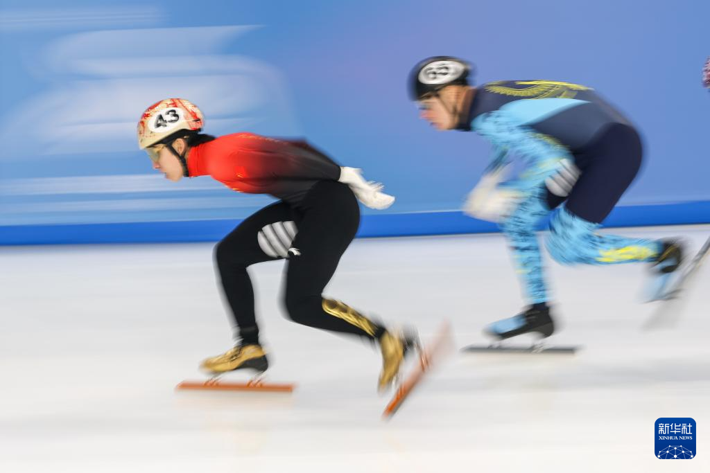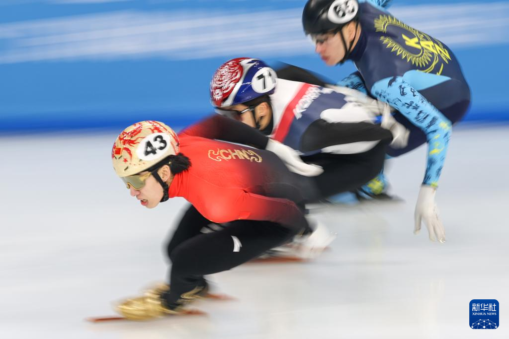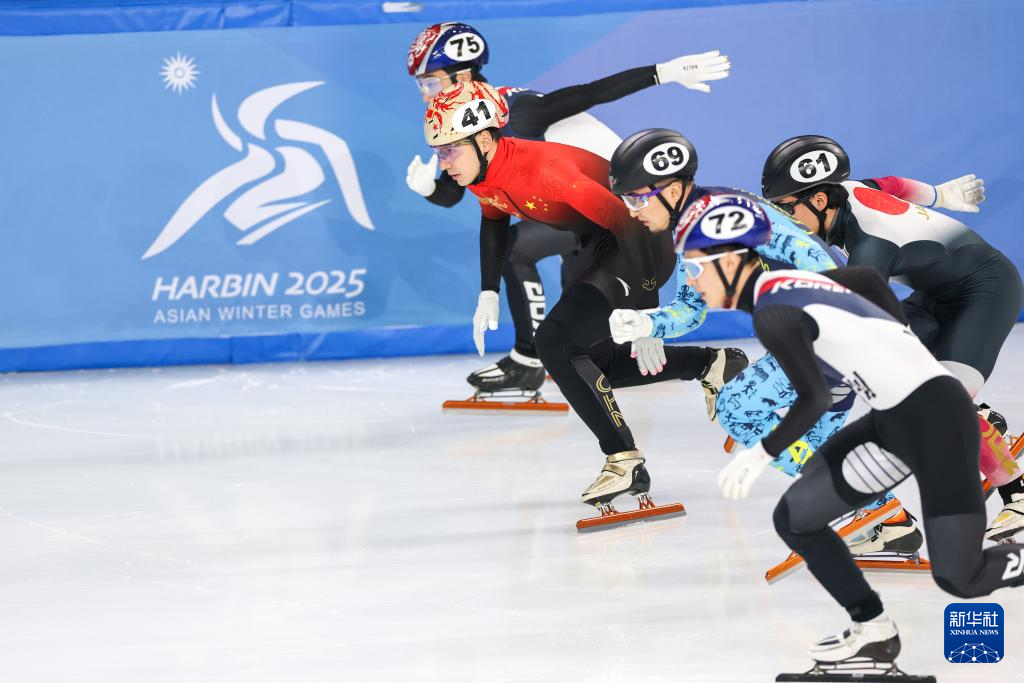 当日,第九届亚冬会短道速滑男子1000米半决赛在哈尔滨举行。