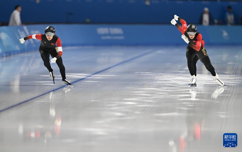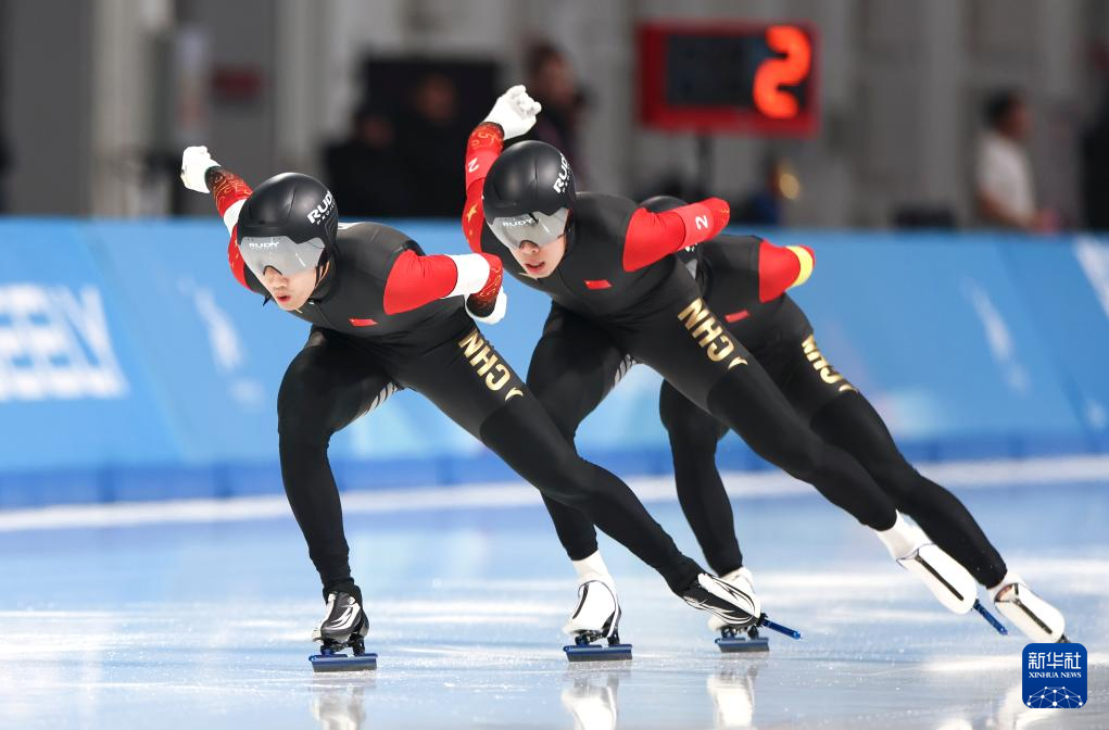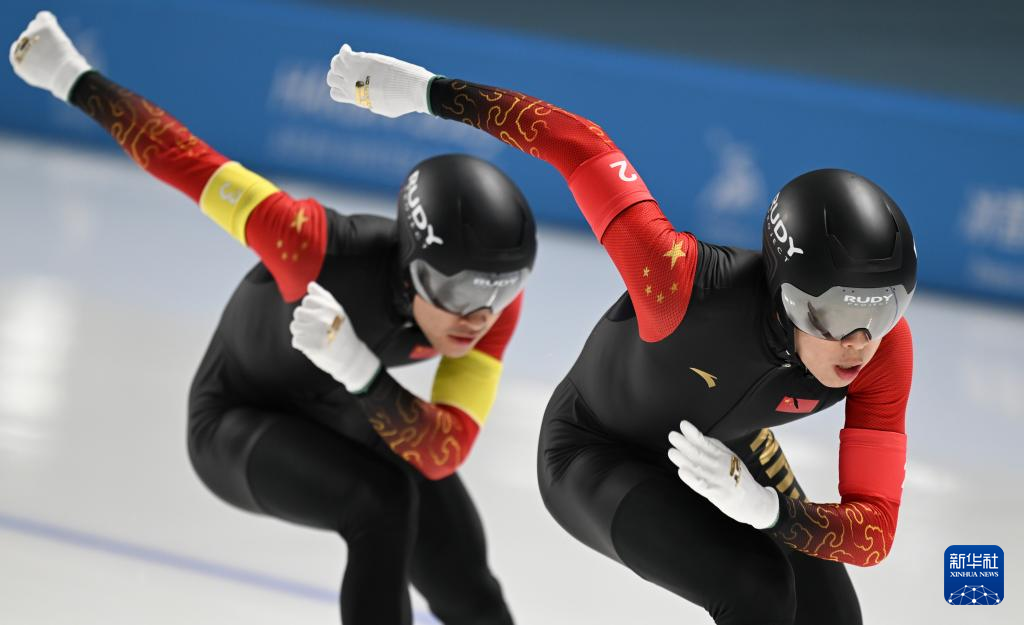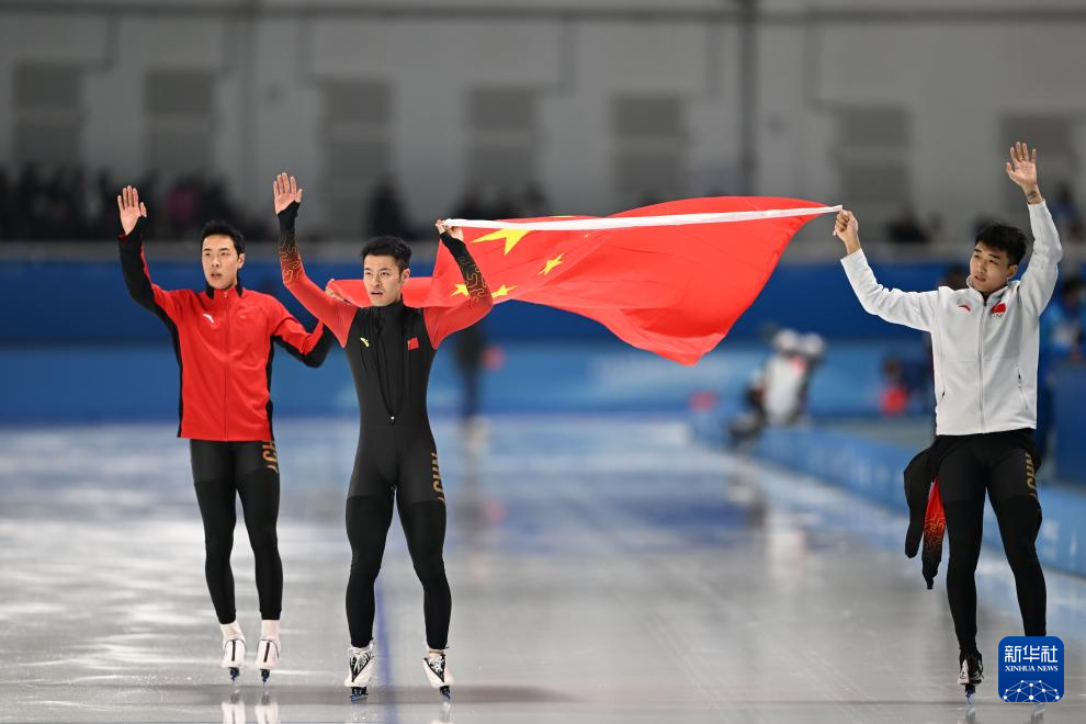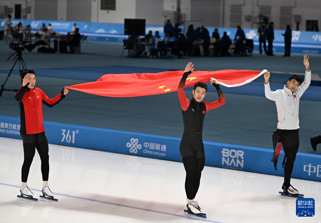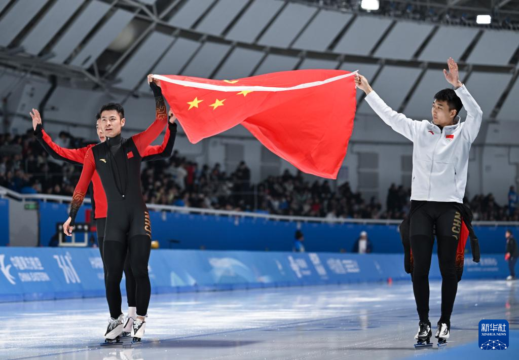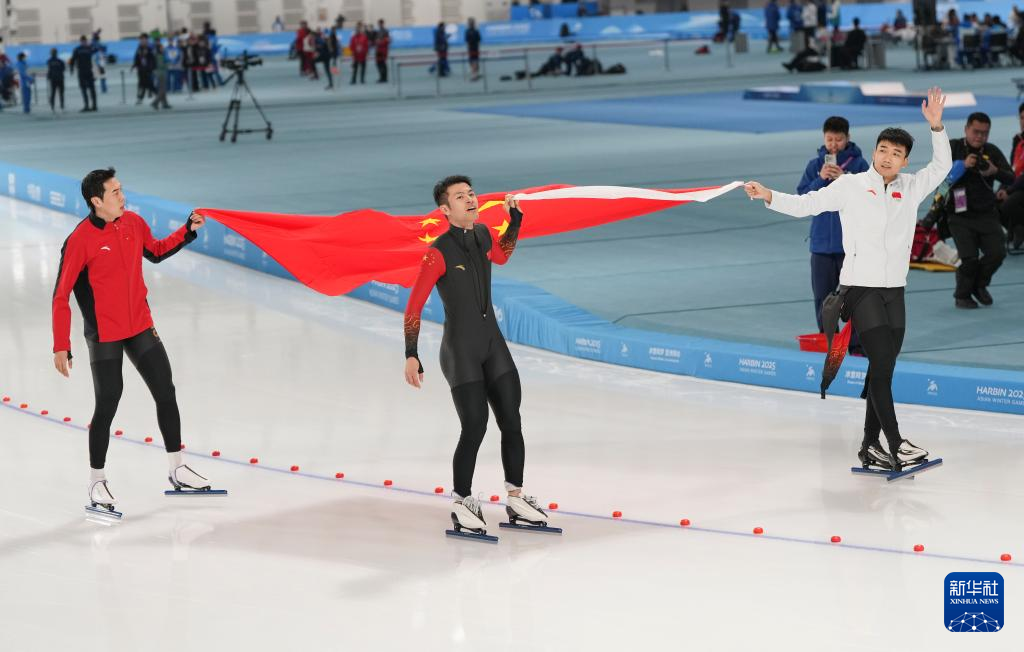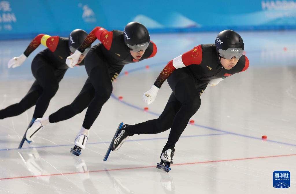 当日,第九届亚冬会速度滑冰男子短距离团体追逐赛在哈尔滨举行。中国队获得冠军。