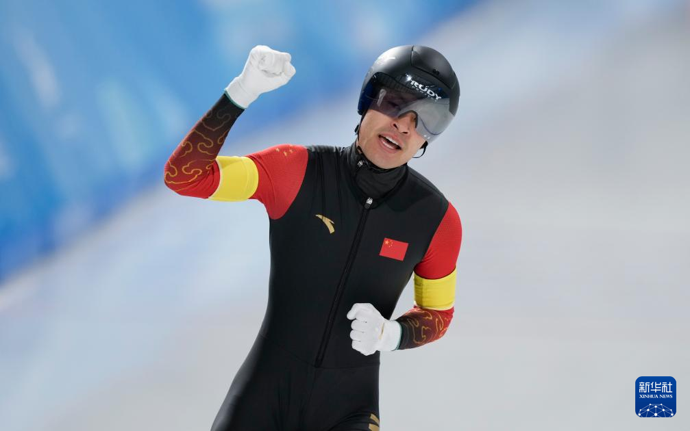 2月10日,中国队选手宁忠岩庆祝夺冠。