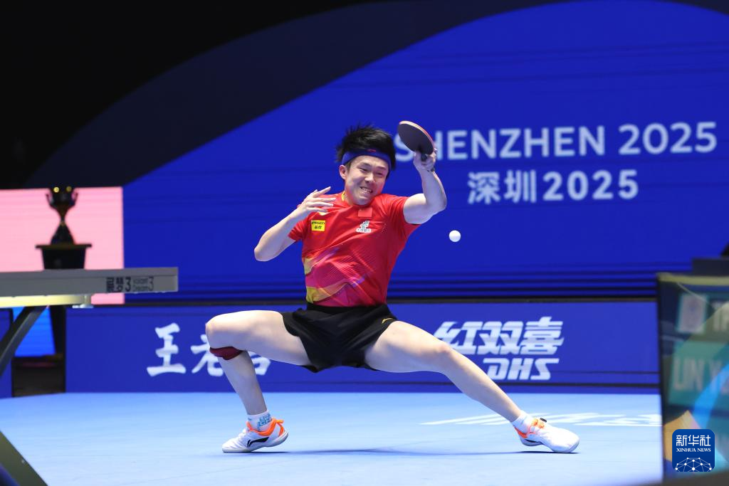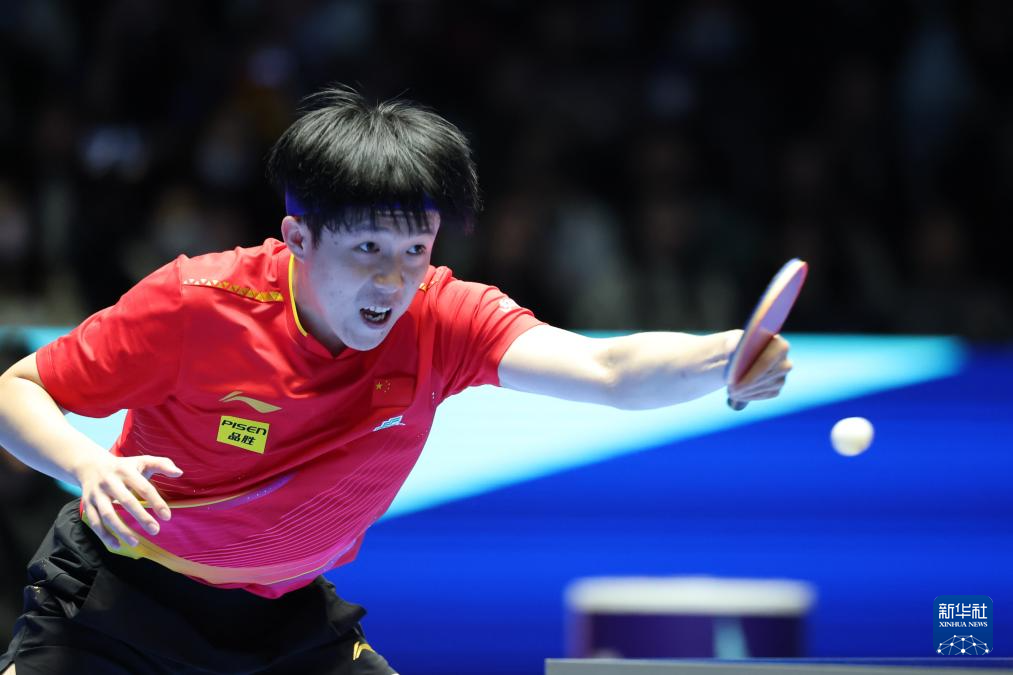 2月23日,王楚钦在比赛中回球。