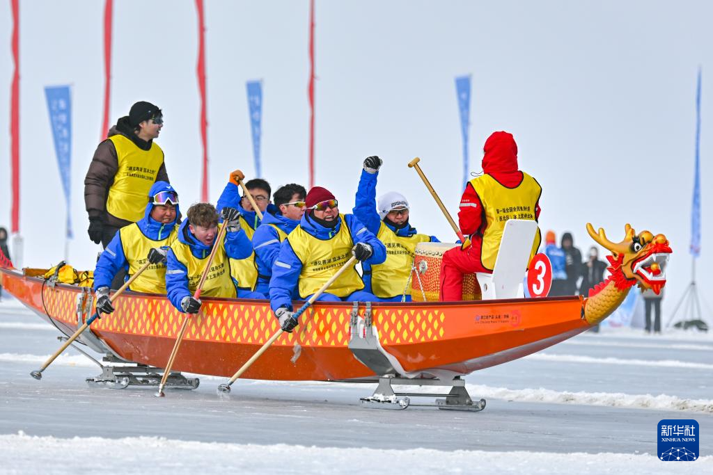 当日,首届赛里木湖全国冰上龙舟邀请赛暨第一届全国全民健身大赛(西北区)冰上龙舟比赛在新疆博尔塔拉蒙古自治州举行。本次比赛设置本地组和公开组两个组别共20支队伍参赛,包含100米直道竞速赛和200米折返赛两个项目。