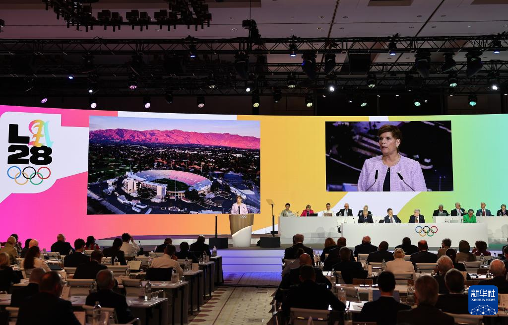 3月20日,国际奥委会副主席、洛杉矶奥运会协调委员会主席妮可·霍韦尔茨就2028年洛杉矶奥运会筹备议题发言。