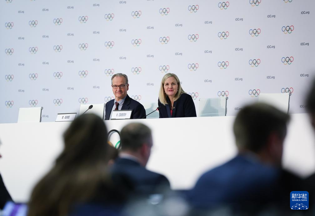 3月20日,国际奥委会新当选主席考文垂(右)在发布会上。