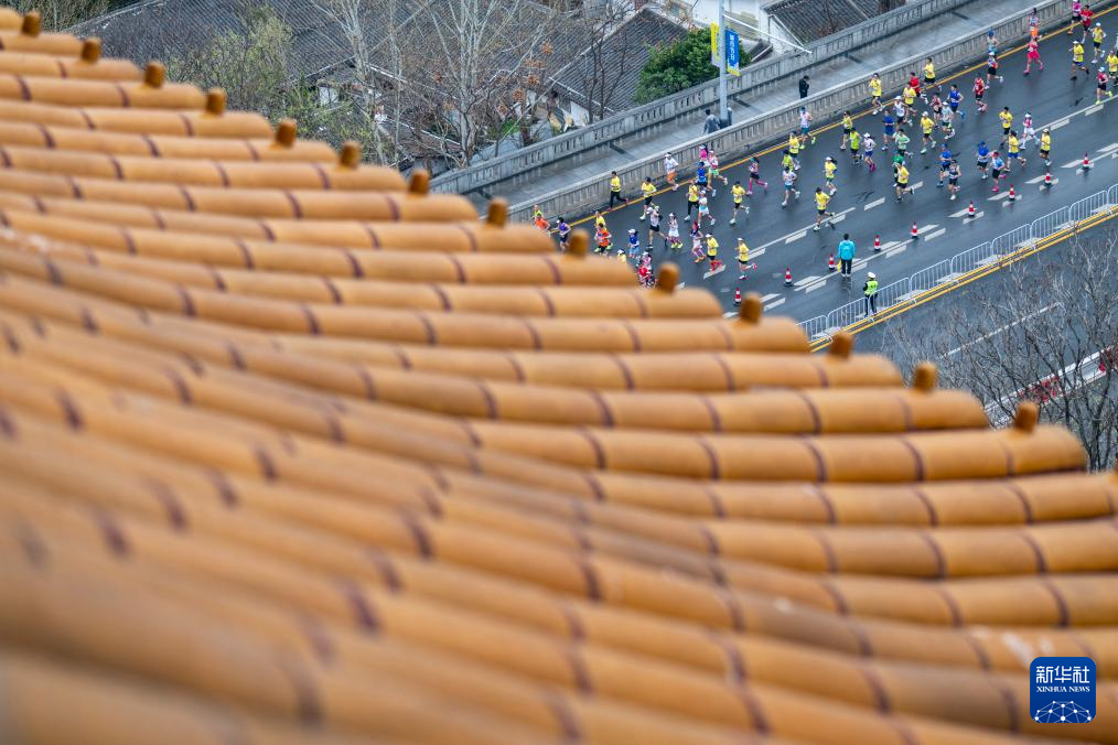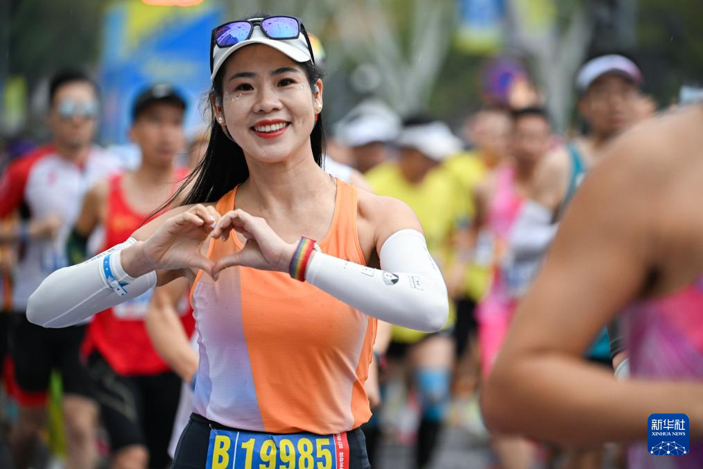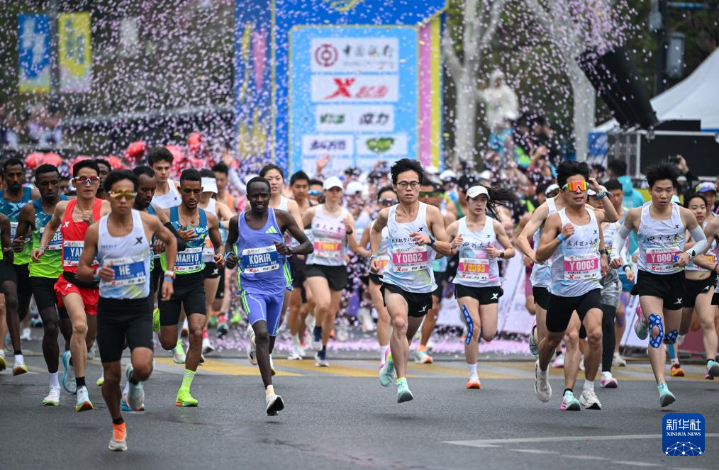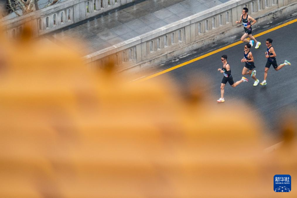 3月23日,中国选手何杰在比赛中。最终,他获得马拉松男子组国内选手第一名,并打破中国男子组赛会纪录。