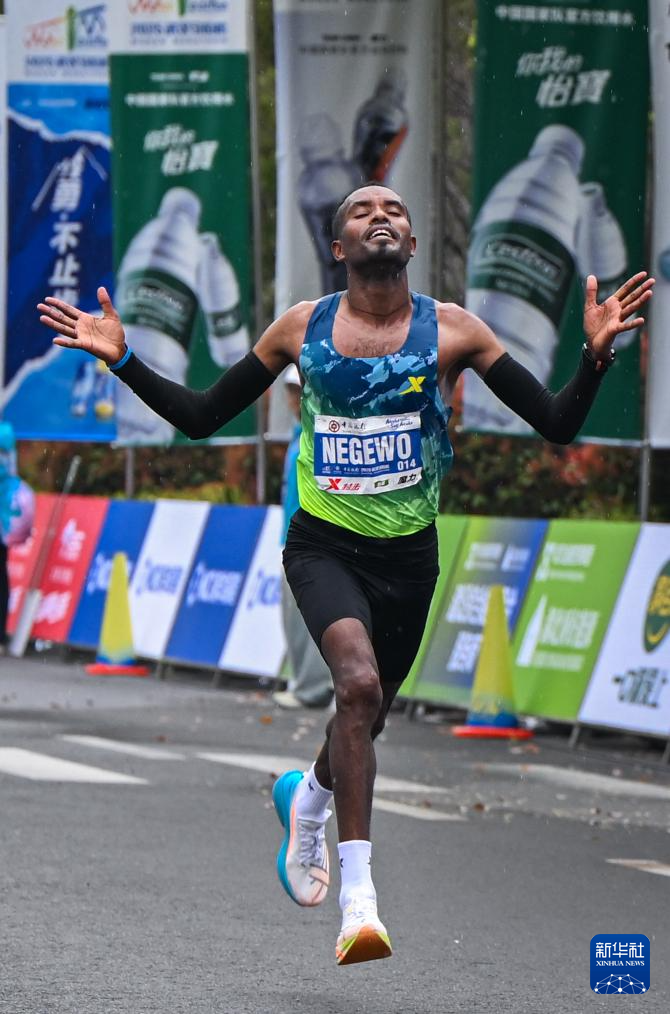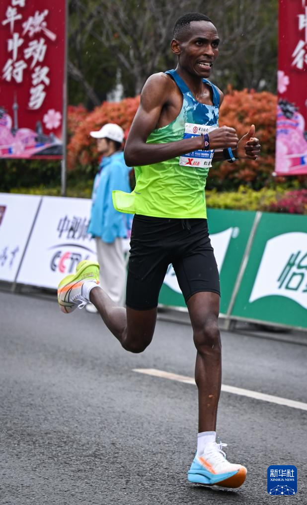 3月23日,埃塞俄比亚选手阿塞法·门格斯图·内格沃在比赛中。最终,他获得马拉松男子组冠军。