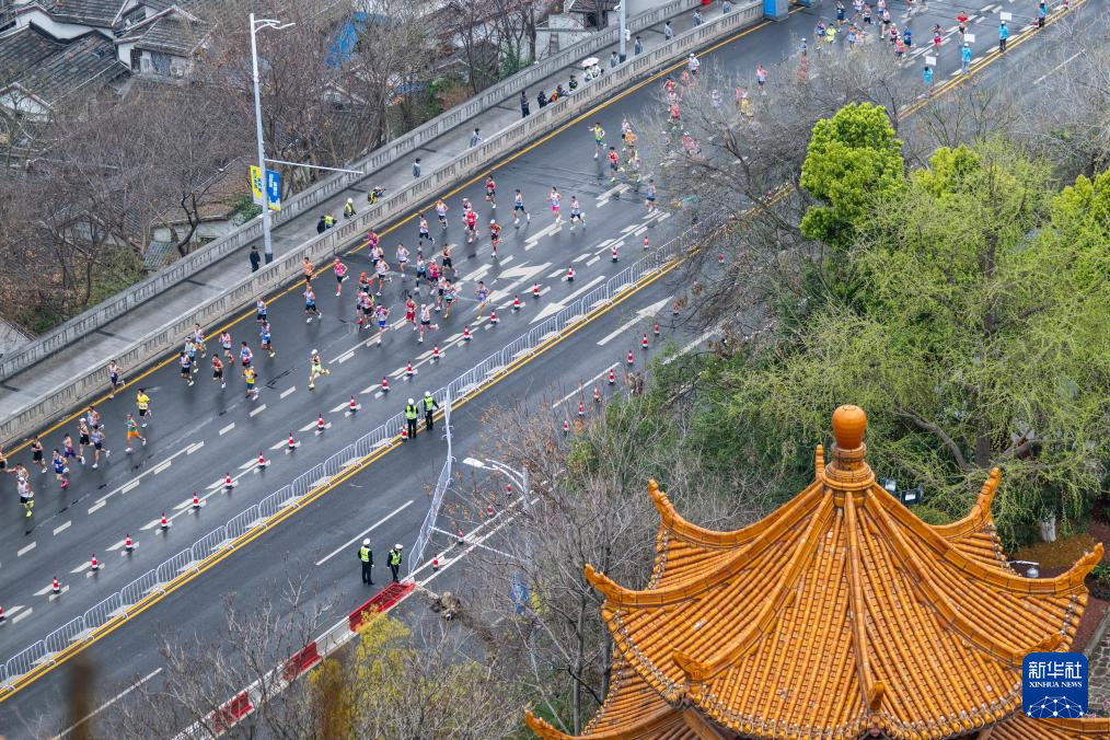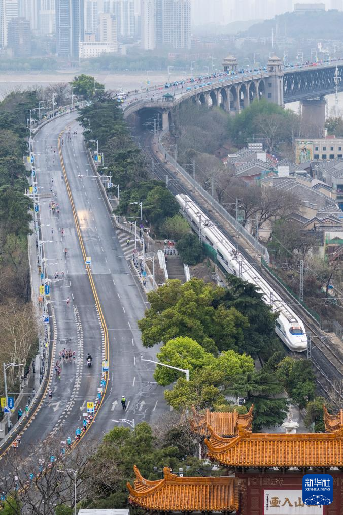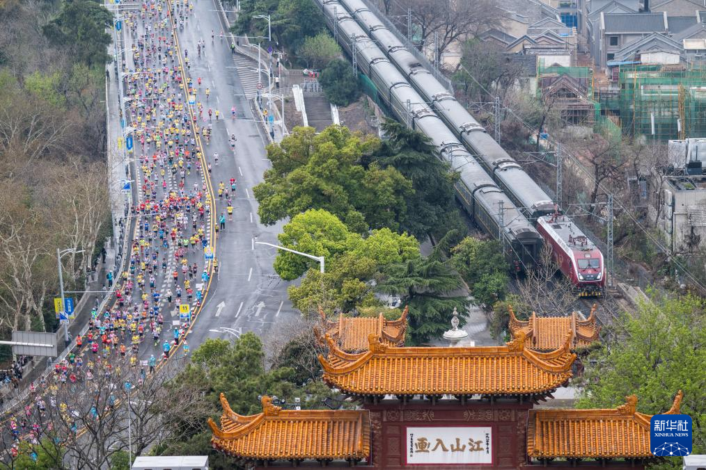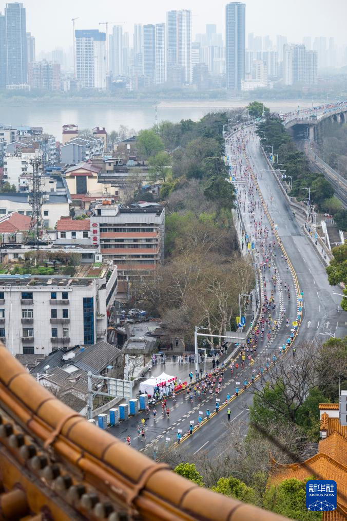 3月23日,参赛选手经过黄鹤楼。