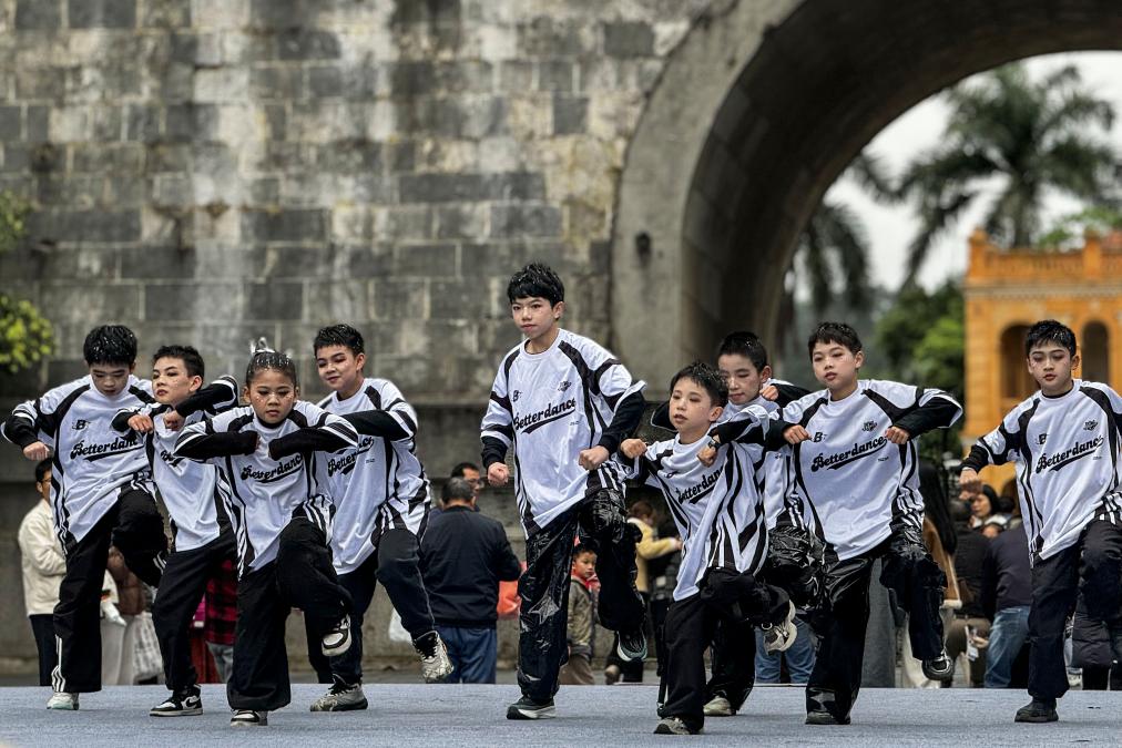 3月30日,在广西凭祥友谊关,越南街舞运动员在表演。(凭祥市融媒体中心供图)