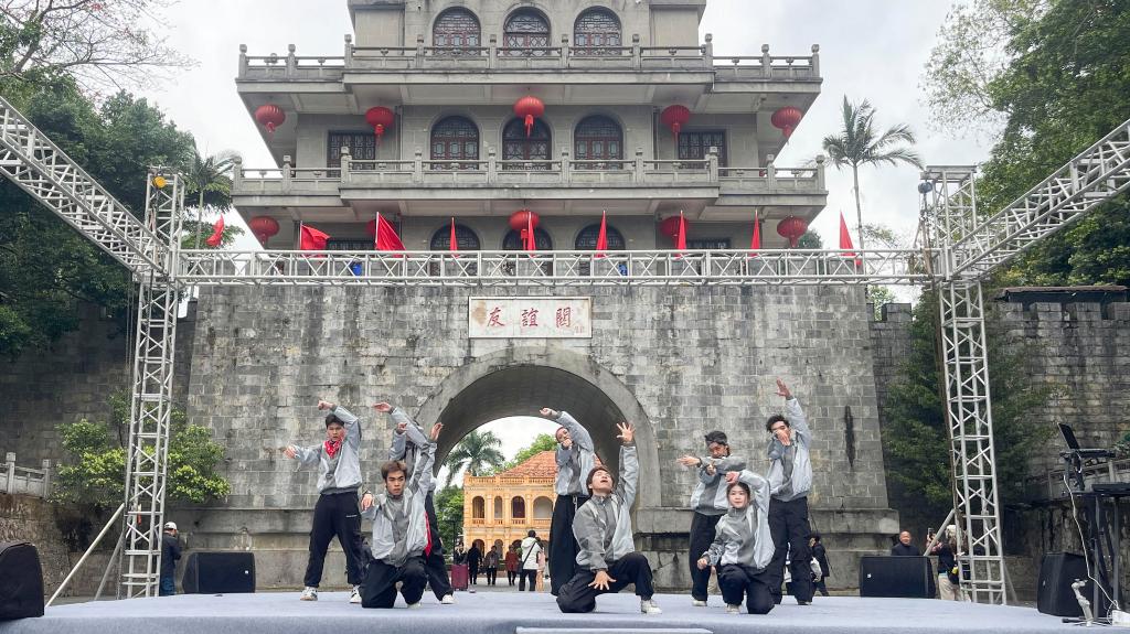 3月30日,在广西凭祥友谊关,中国街舞运动员在表演。(凭祥市融媒体中心供图)