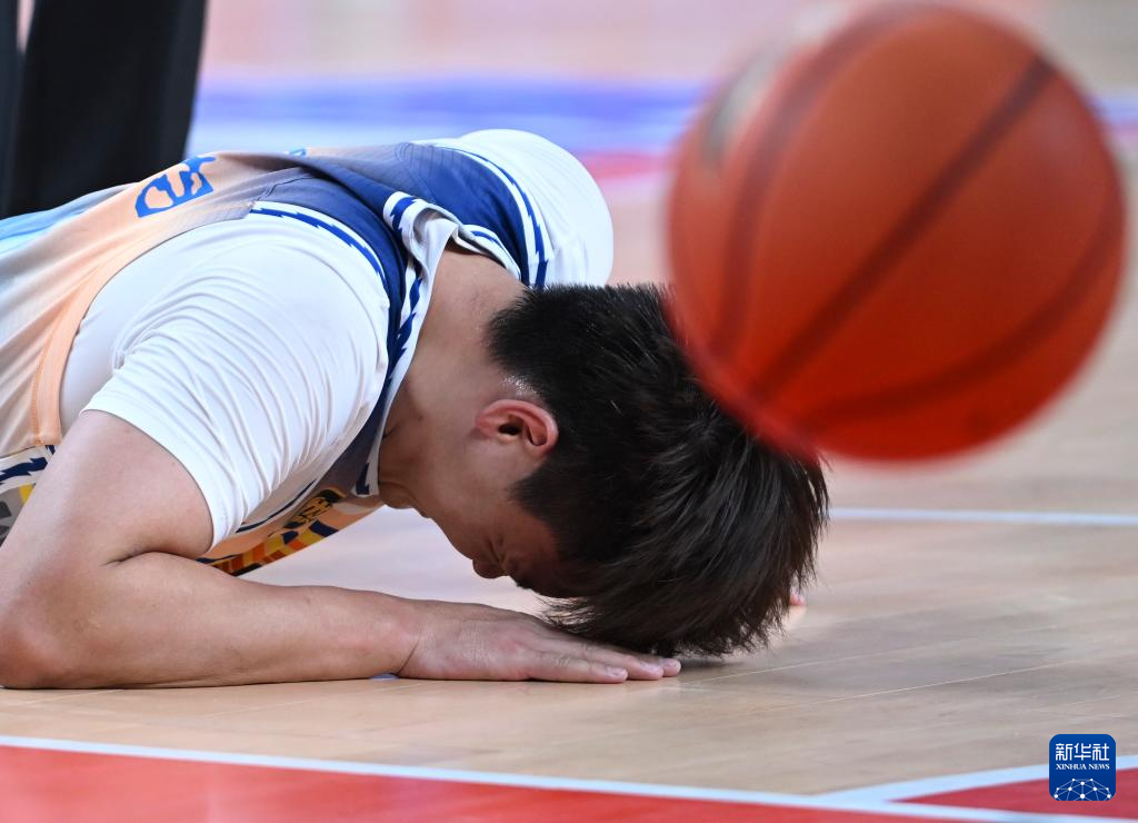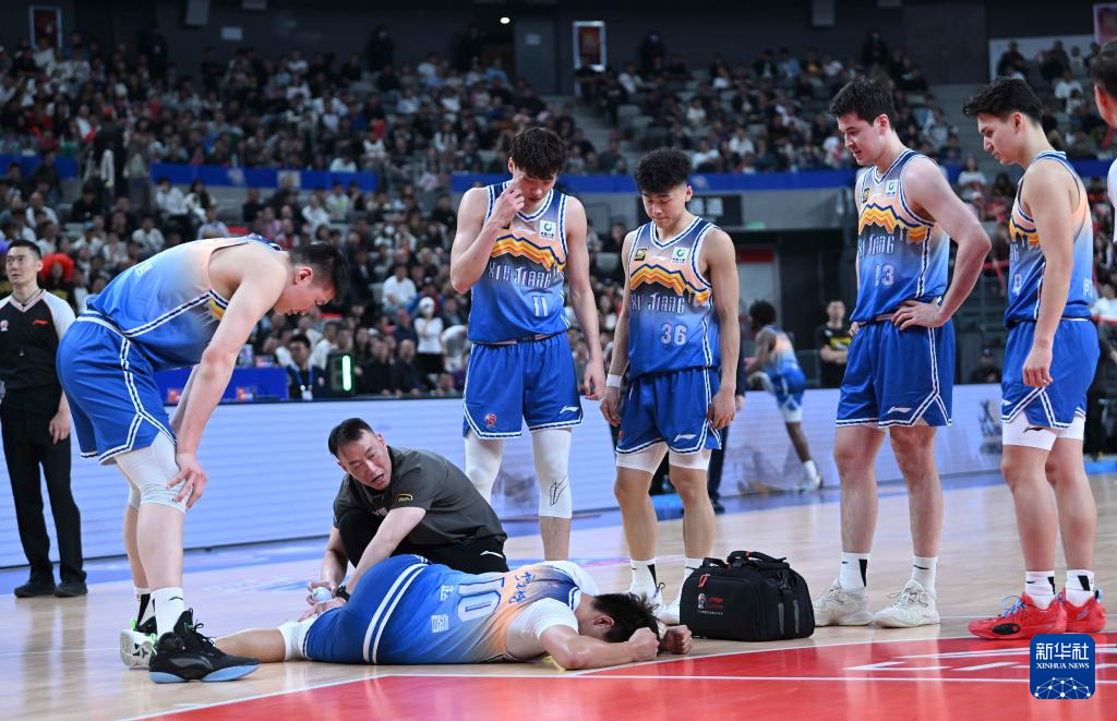 4月4日,新疆伊力特队球员赵睿在比赛中受伤倒地。