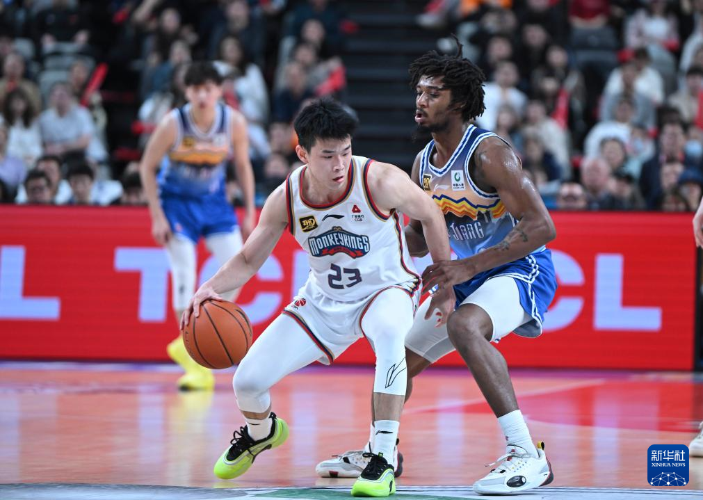 4月4日,南京头排苏酒队球员祝铭震(右)在比赛中突破。