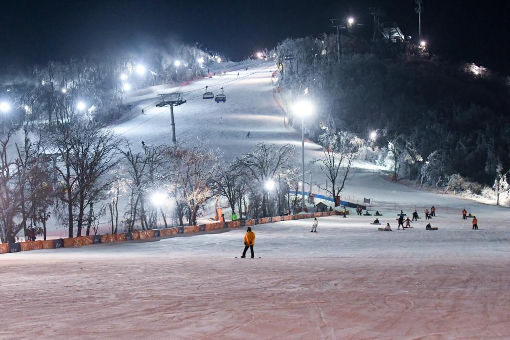图为滑雪爱好者在长春庙香山滑雪场体验夜滑。新华社记者 颜麟蕴 摄