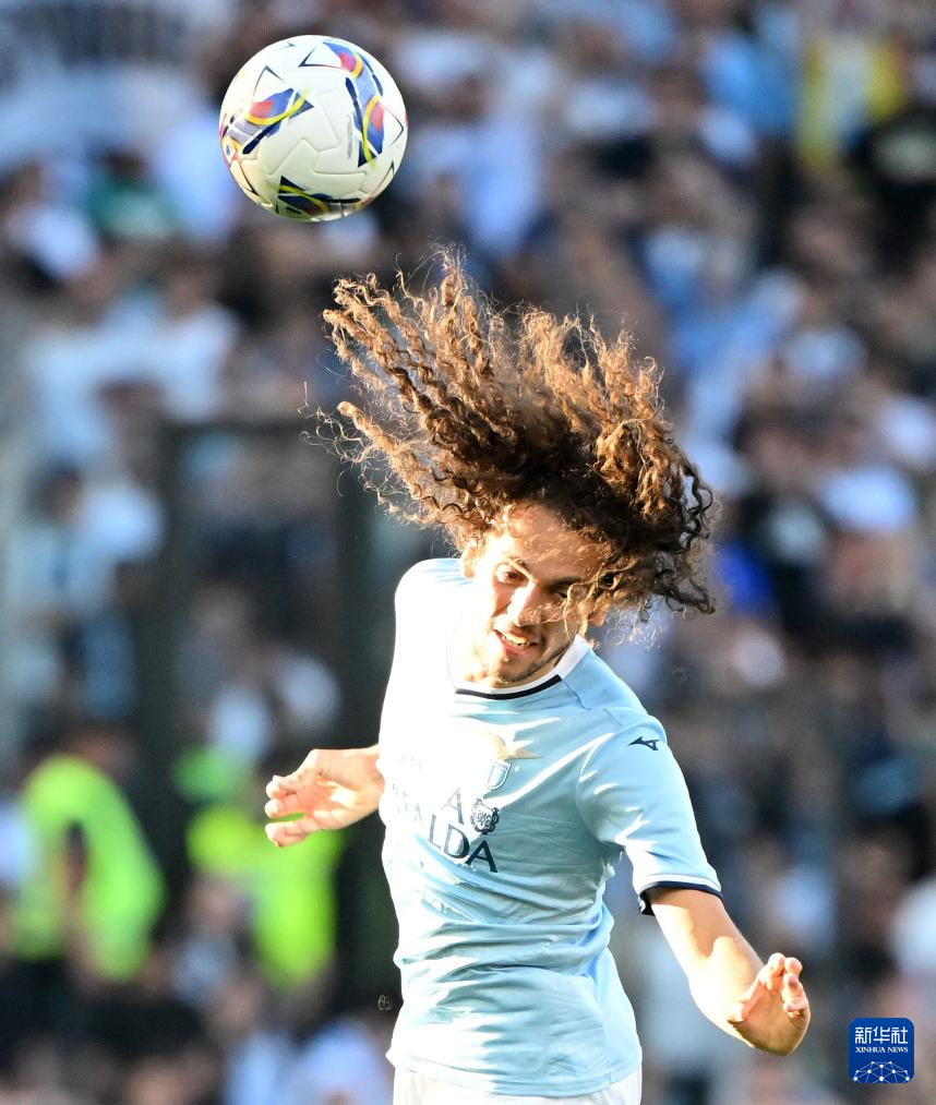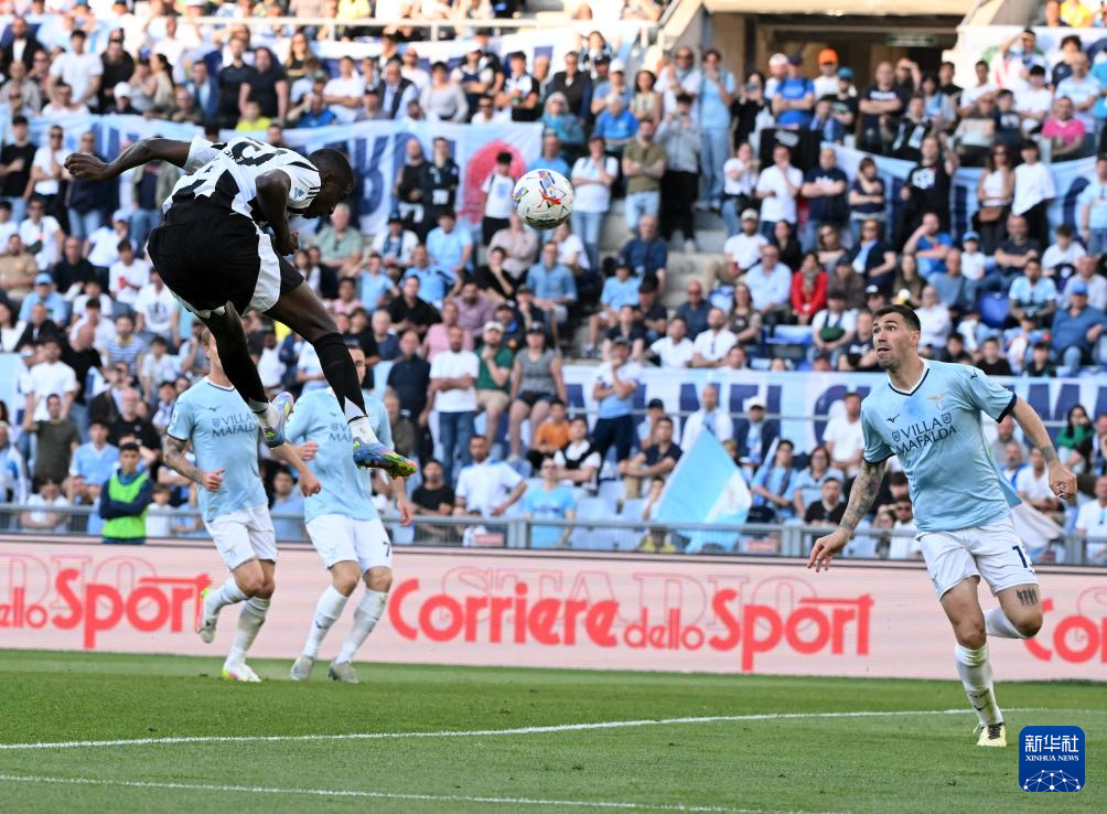 5月10日,拉齐奥队球员贡多齐在比赛中争顶。