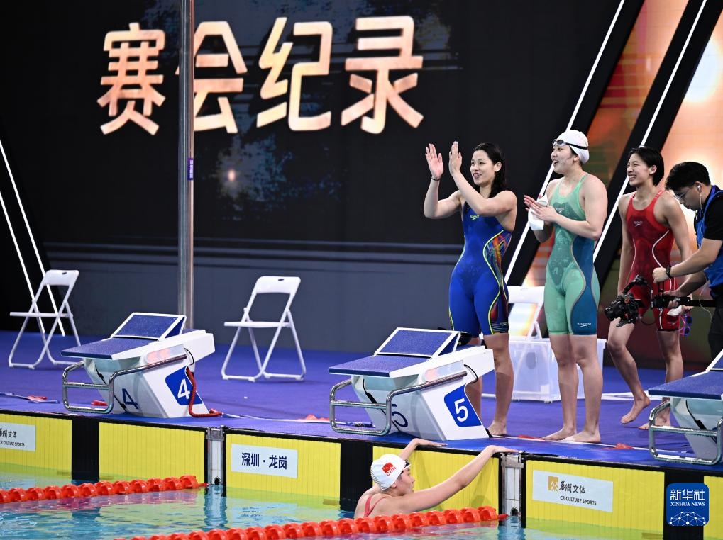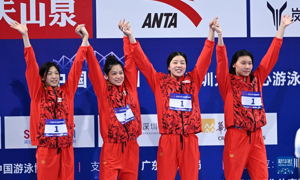 当日,在广东深圳举行的2025年全国游泳冠军赛女子4x200米自由泳接力决赛中,由严窕珊、余依婷、吴卿风、柳雅欣组成的浙江寿仙谷队以7分50秒20的成绩获得冠军,并打破赛会纪录。