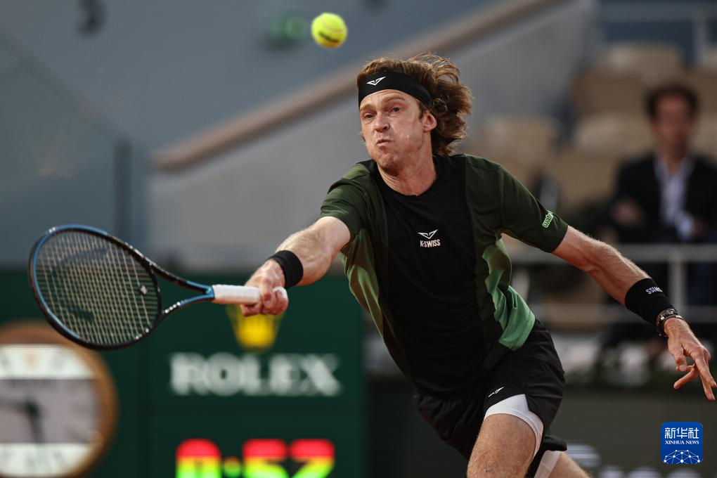 6月2日,卢布列夫在比赛中回球。