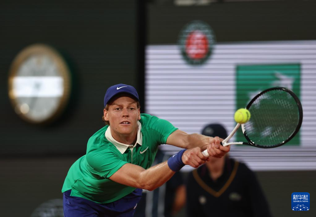 6月2日,辛纳在比赛中回球。